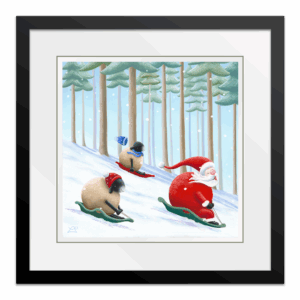 It’s that feeling — familiar yet fresh — that inspired Lucy Pittaway’s Christmas Collection 2025. In Santa’s Sled Squad, Santa and his flock return once more, tumbling through snow-covered hills in Lucy’s latest pastel artwork. For many who collect her pieces, these scenes have become part of their own Christmas story.