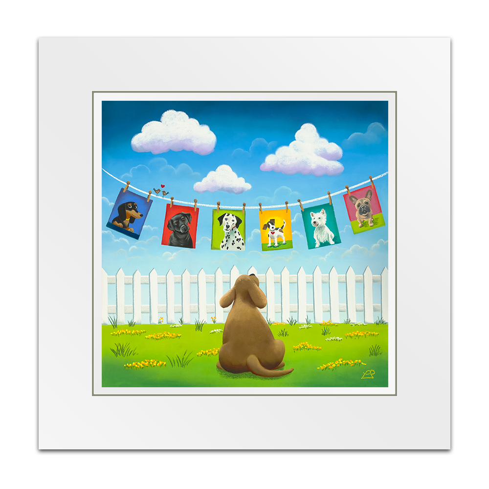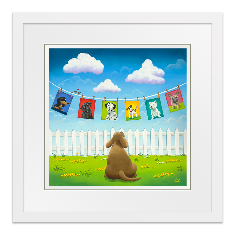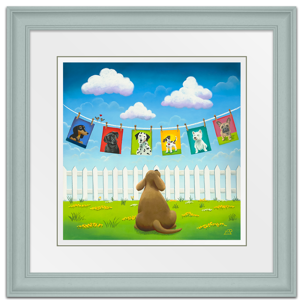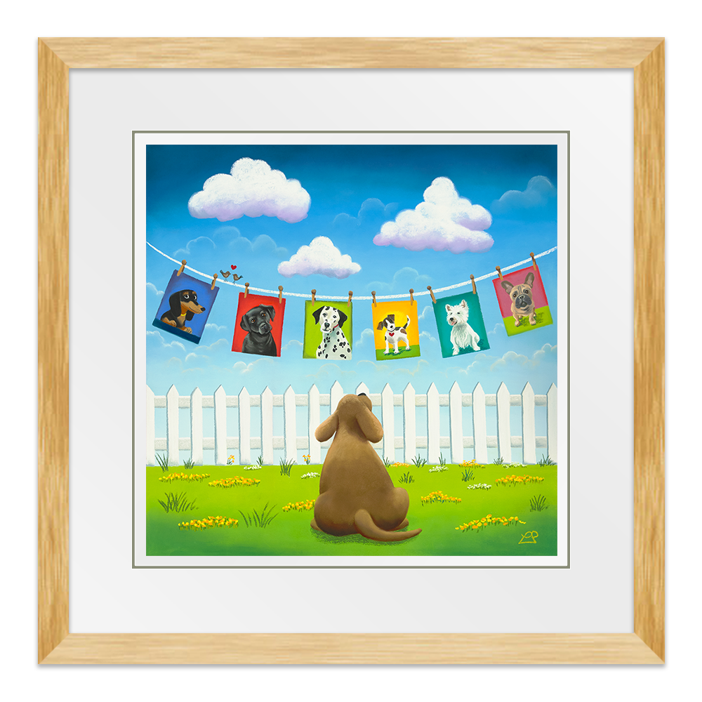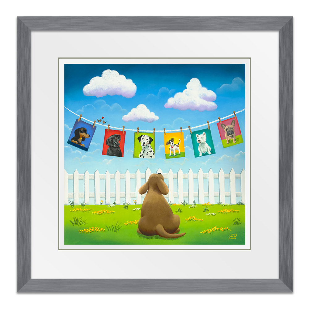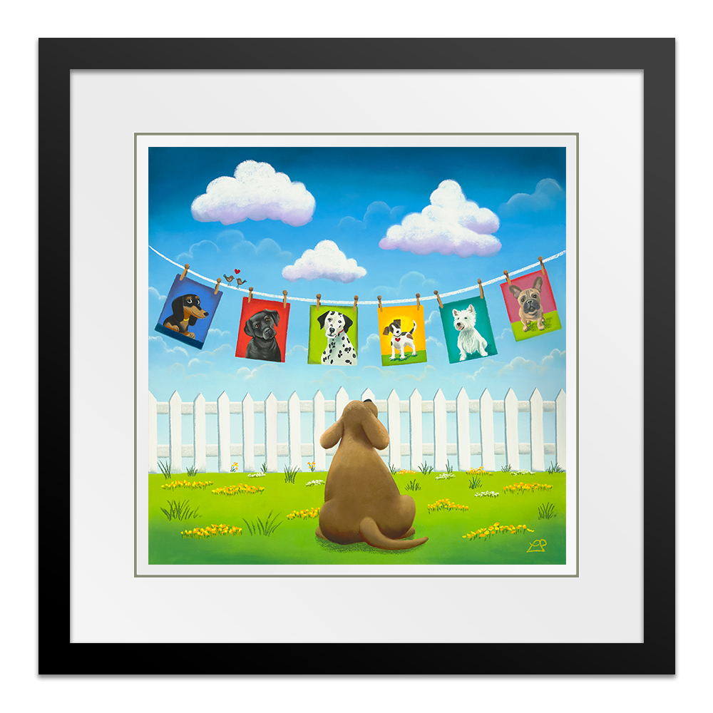 I purchased the beautiful framed print as a gift for a collector. The picture will look fantastic hung and with which all dog owners can equate to raise a smile. Very well packaged for delivery and wrapping
