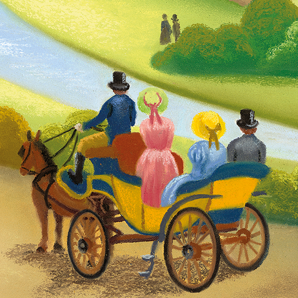 Inspired by the original 1825 scene painted by John Dobbin, Lucy adds her own twist, with playful touches – including a few familiar sheep – and a vibrant palette that reflects the sense of excitement and pride felt on that day.