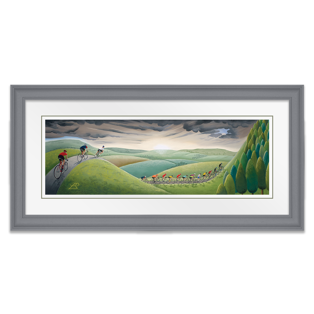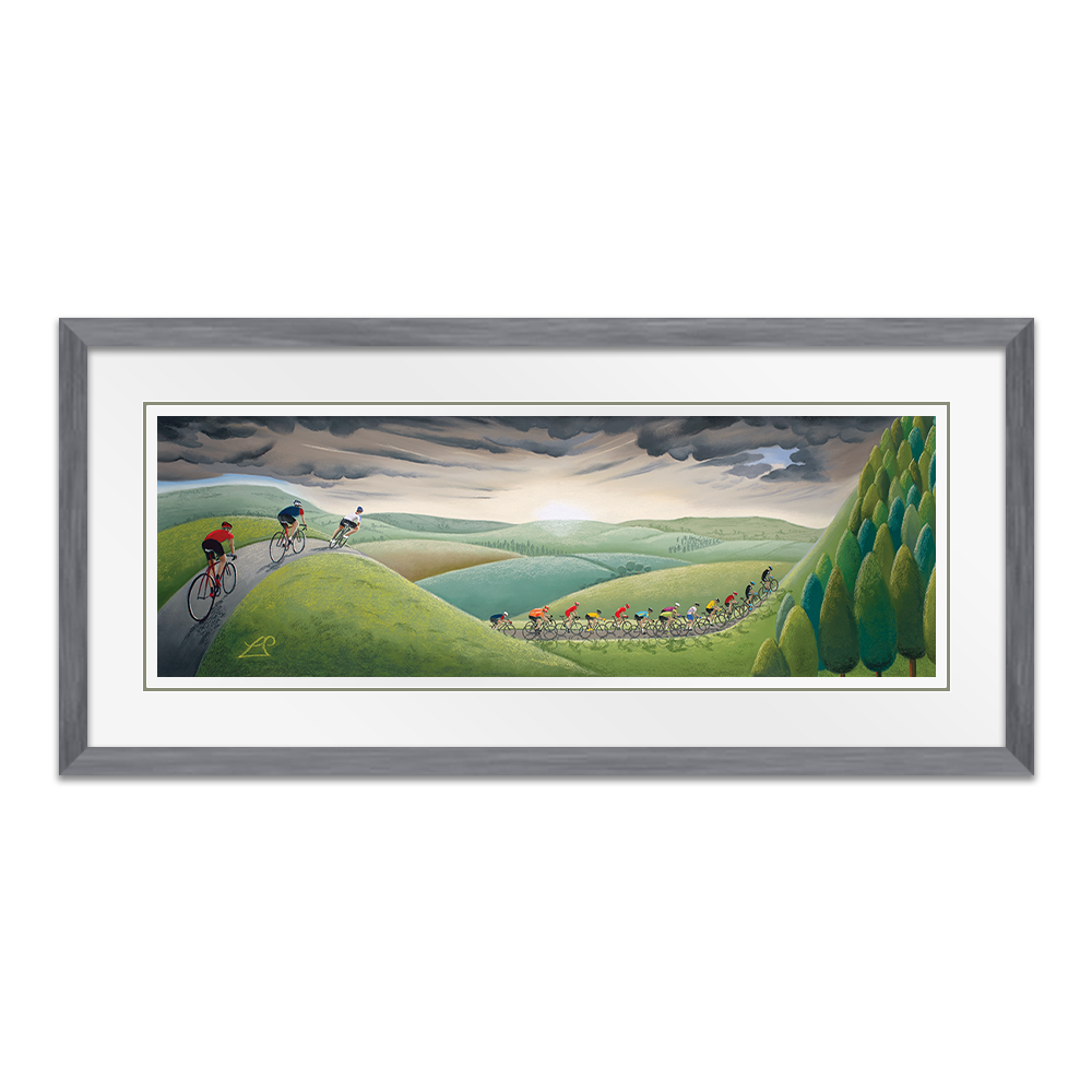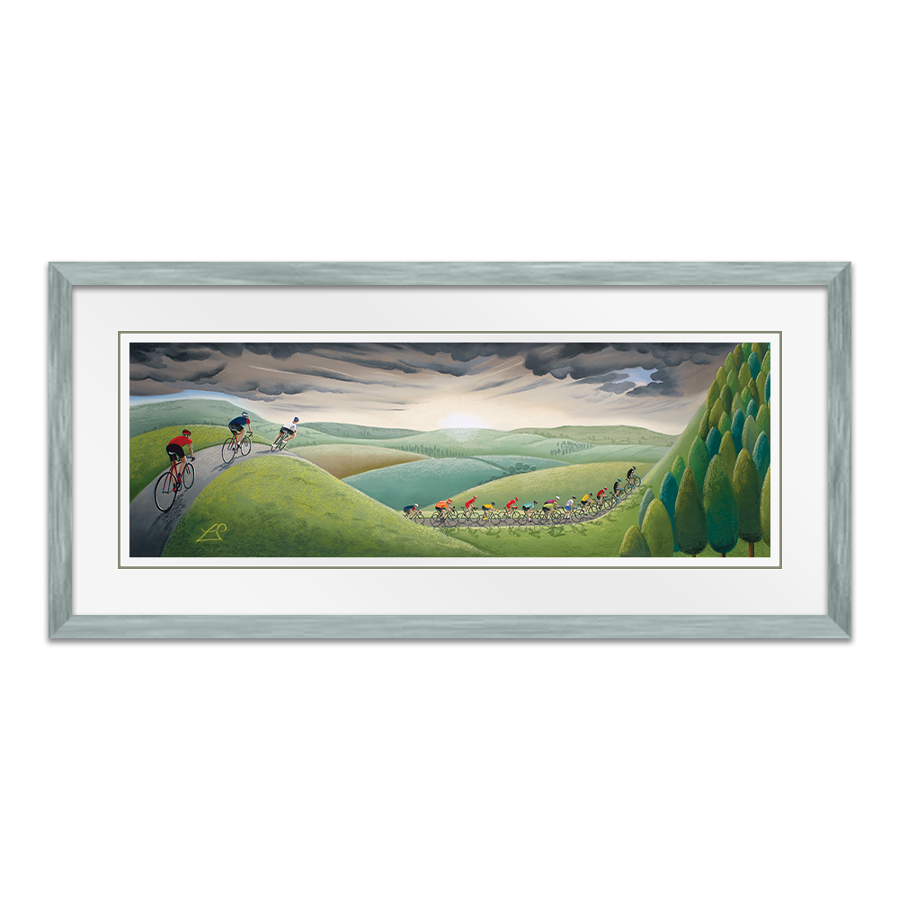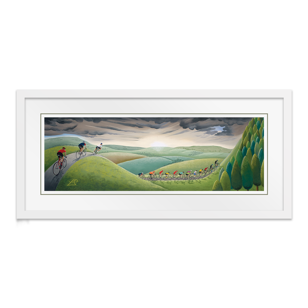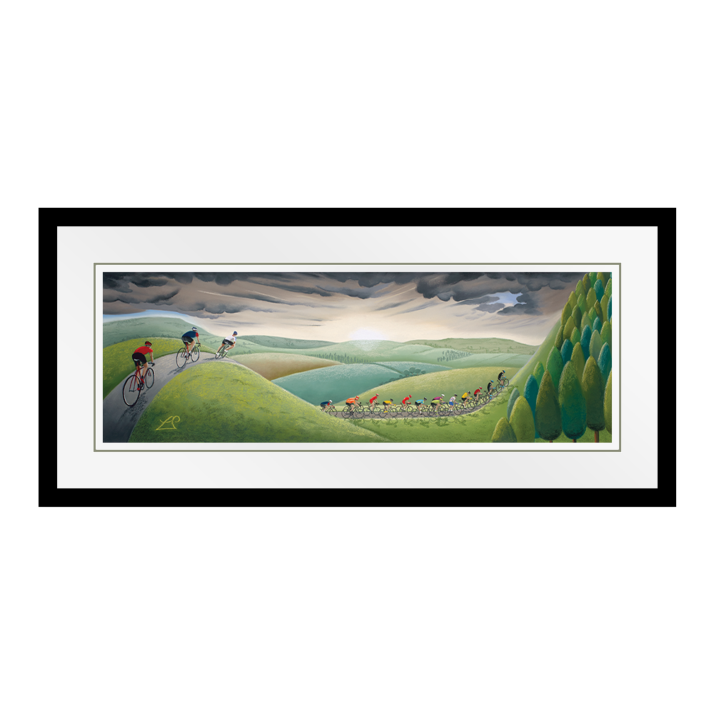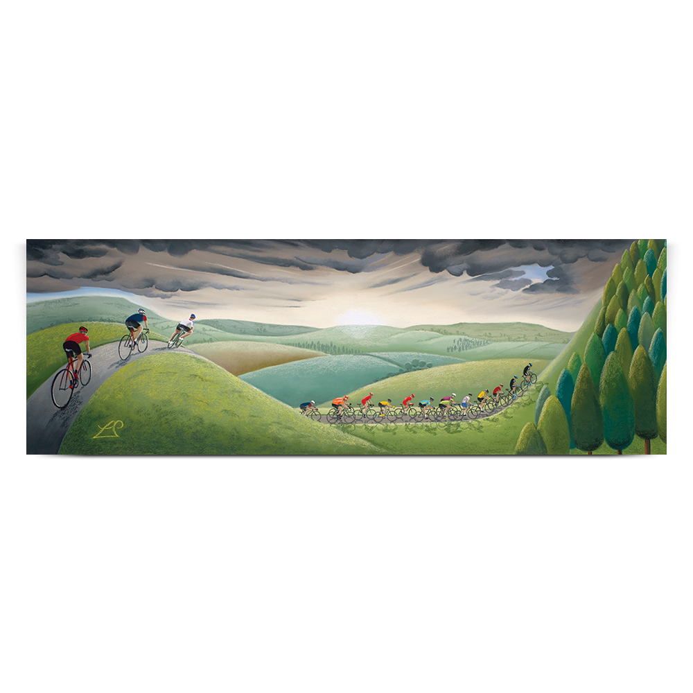 Created as one of several pieces in my 2017 cycling collection for the Tour de Yorkshire, Fearsome Climb demonstrates those climbs all riders know they must tackle in a race in Yorkshire! Where steep hills and challenging descents are common place, they will be tested to their limits on some of the more relentless peaks as they race against the clock.