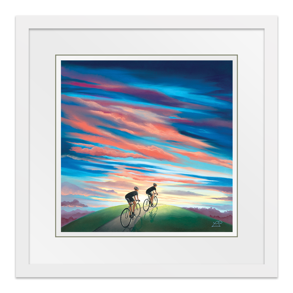 Free Spirits' is all about that feeling of leaving the workload and the daily grind behind and feeling stress free. These cyclists are enjoying the best that mother nature provides with a striking and colourful sunset sky as their backdrop.