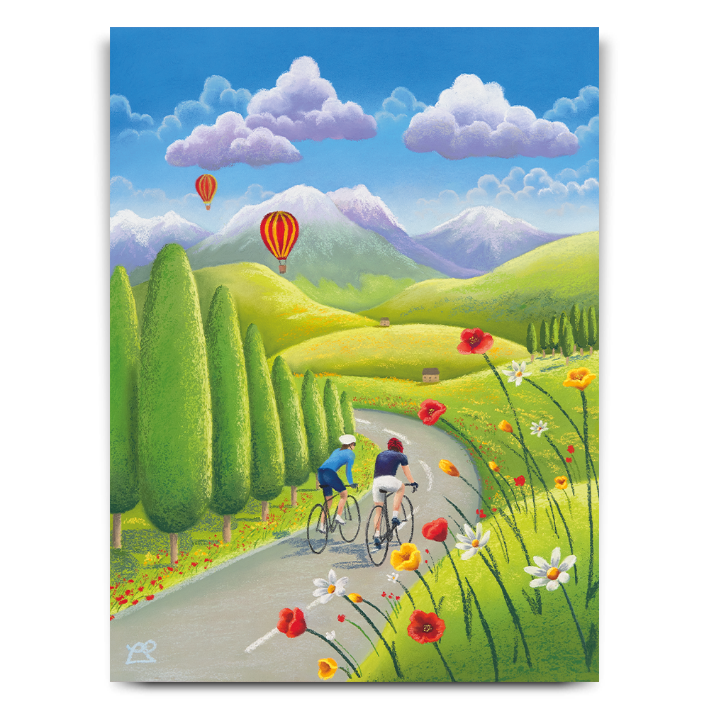 Ready for a challenging ride up into the mountains, this pair are serious about their cycling. Inspired by the Tour De France and riding in the French Alps, this scene sets the idel backdrop for a perfect summer ride.