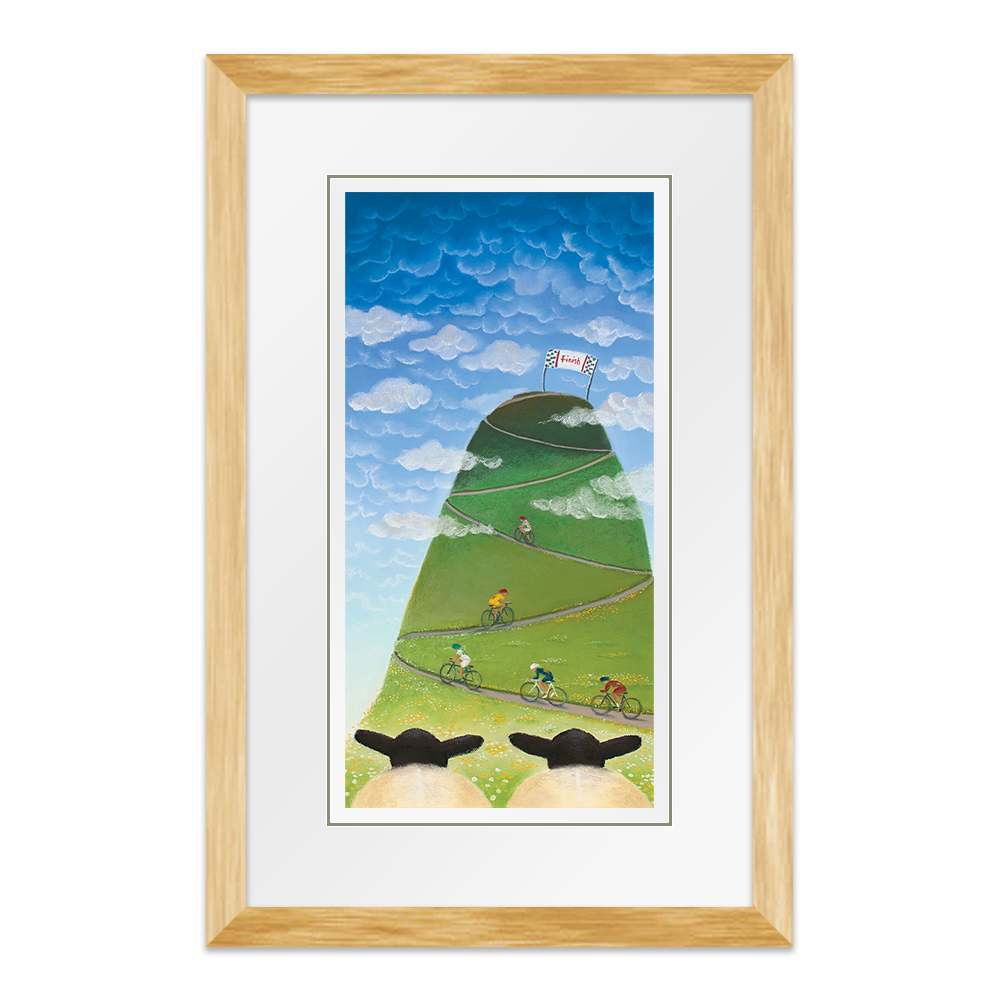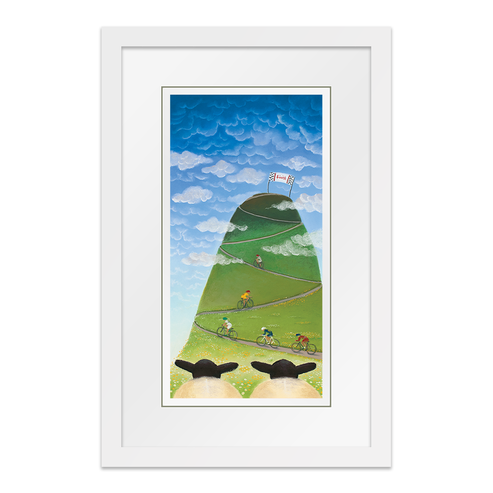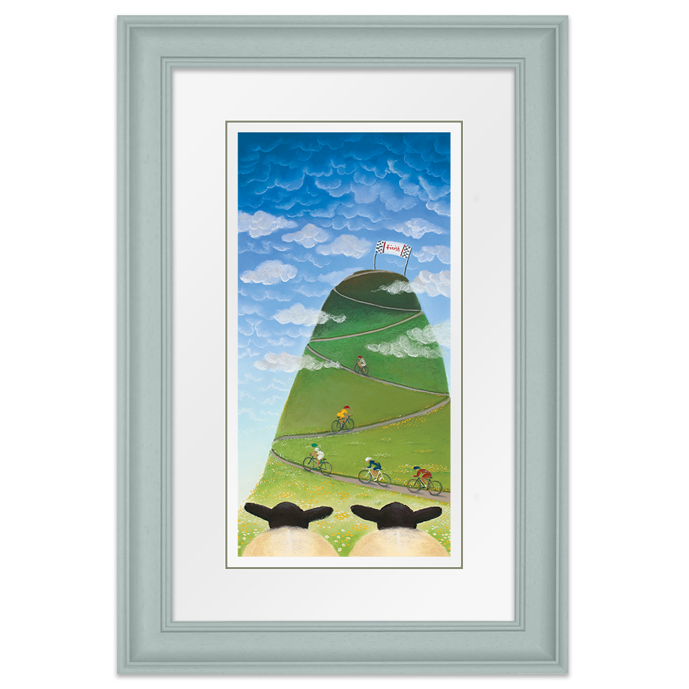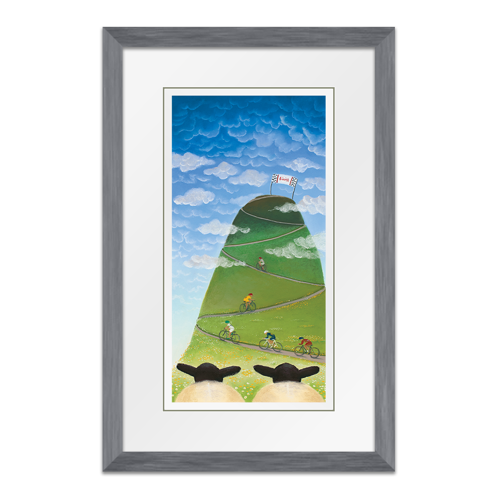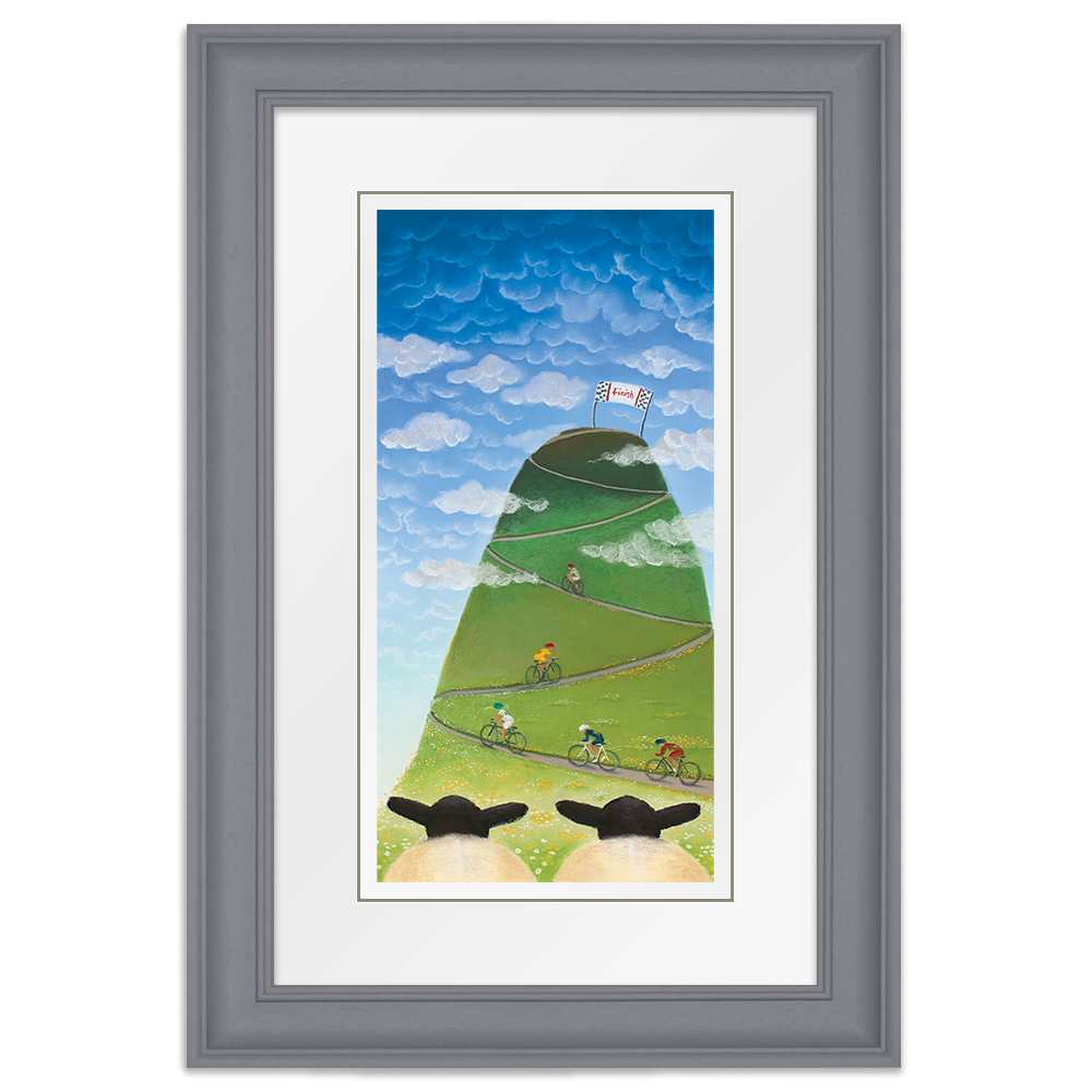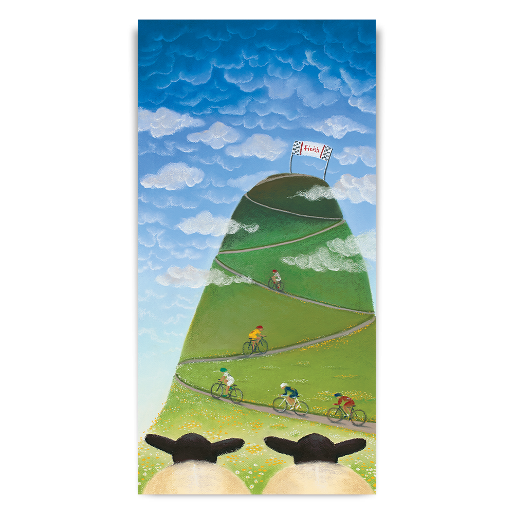 It’s a monstrous hill and those crazy cyclists are determined to get to the top, to the finish point. The sheep below are the smart ones, simply taking in the view and enjoying watching their efforts!