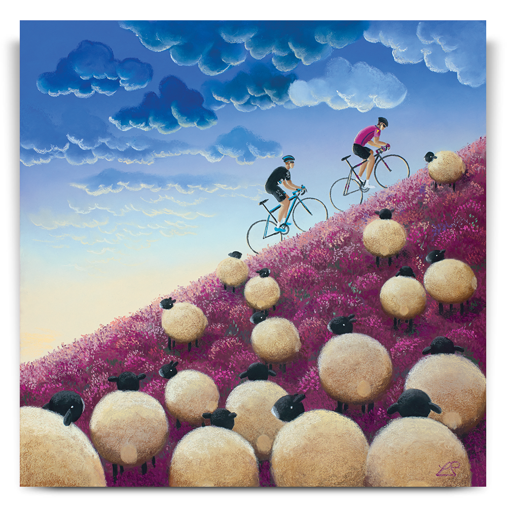 Created around the time of the Tour De Yorkshire, these cyclists are scaling the hills and mountains, watched by a flock of fascinated sheep.