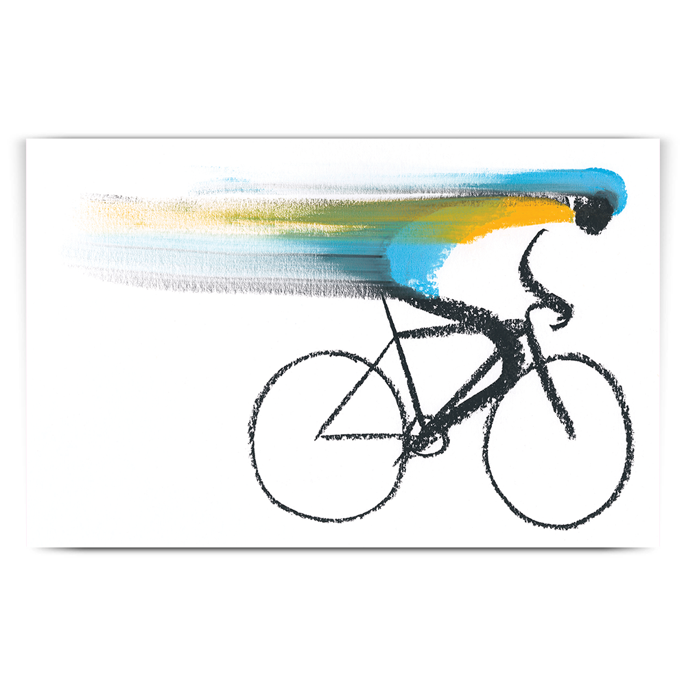 Tucking their head down low and placing as much power through the pedals as they can, this rider is sprinting for the finish line so fast, they are a blur to the eye!