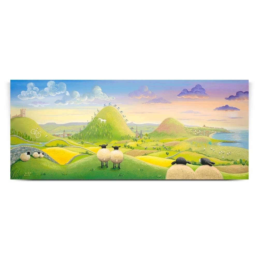 Tour de Yorkshire Art - Official painting of Stage 3 of the 2018 Tour de Yorkshire, depicting the iconic landmarks of Yorkshire on the 'Market Towns' stage of Richmond to Scarborough.