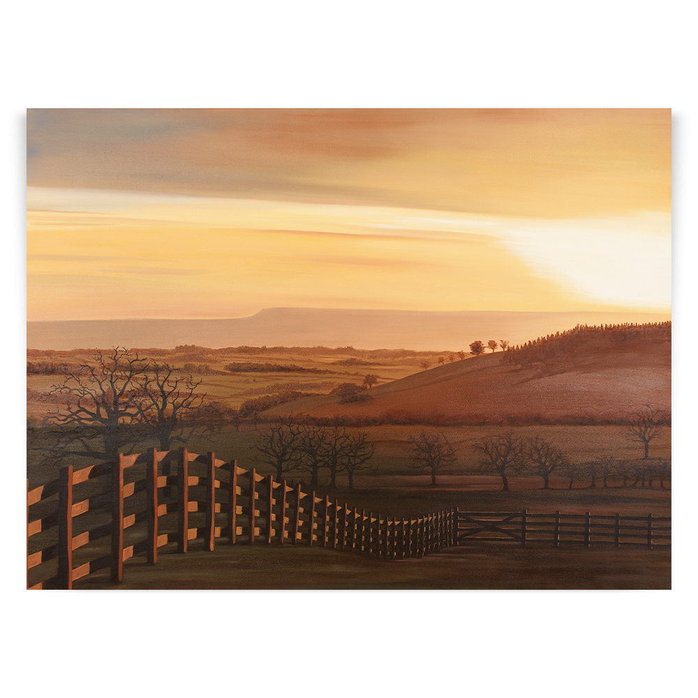 View From High Barn is a piece created from a stunning viewpoint in Whashton, just outside of Richmond, North Yorkshire. A place loved by my family, it sports breathtaking views of the beautiful Dales and stretches as far as the Cleveland Hills in the distance.