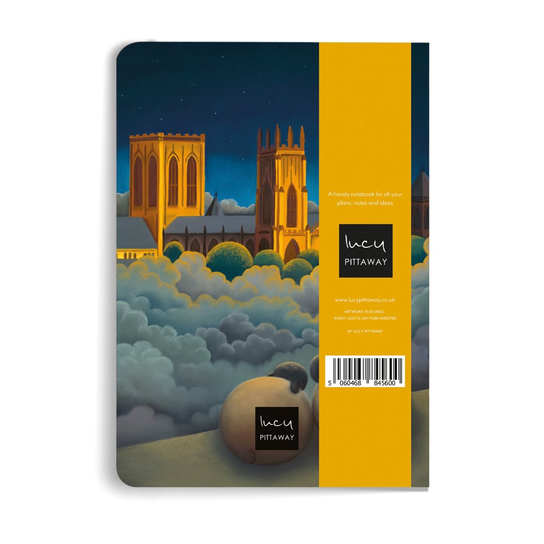 Introducing Lucy's Night Lights on York Minster artwork, elegantly featured in this exquisite perfect-bound notebook. Ideal for capturing your thoughts, plans, and projects.