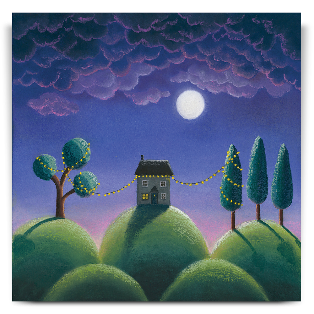 Under the light of the full moon and the dying light of the day, the warmth of the twinkly lights suggests there's something to celebrate in this house tonight.