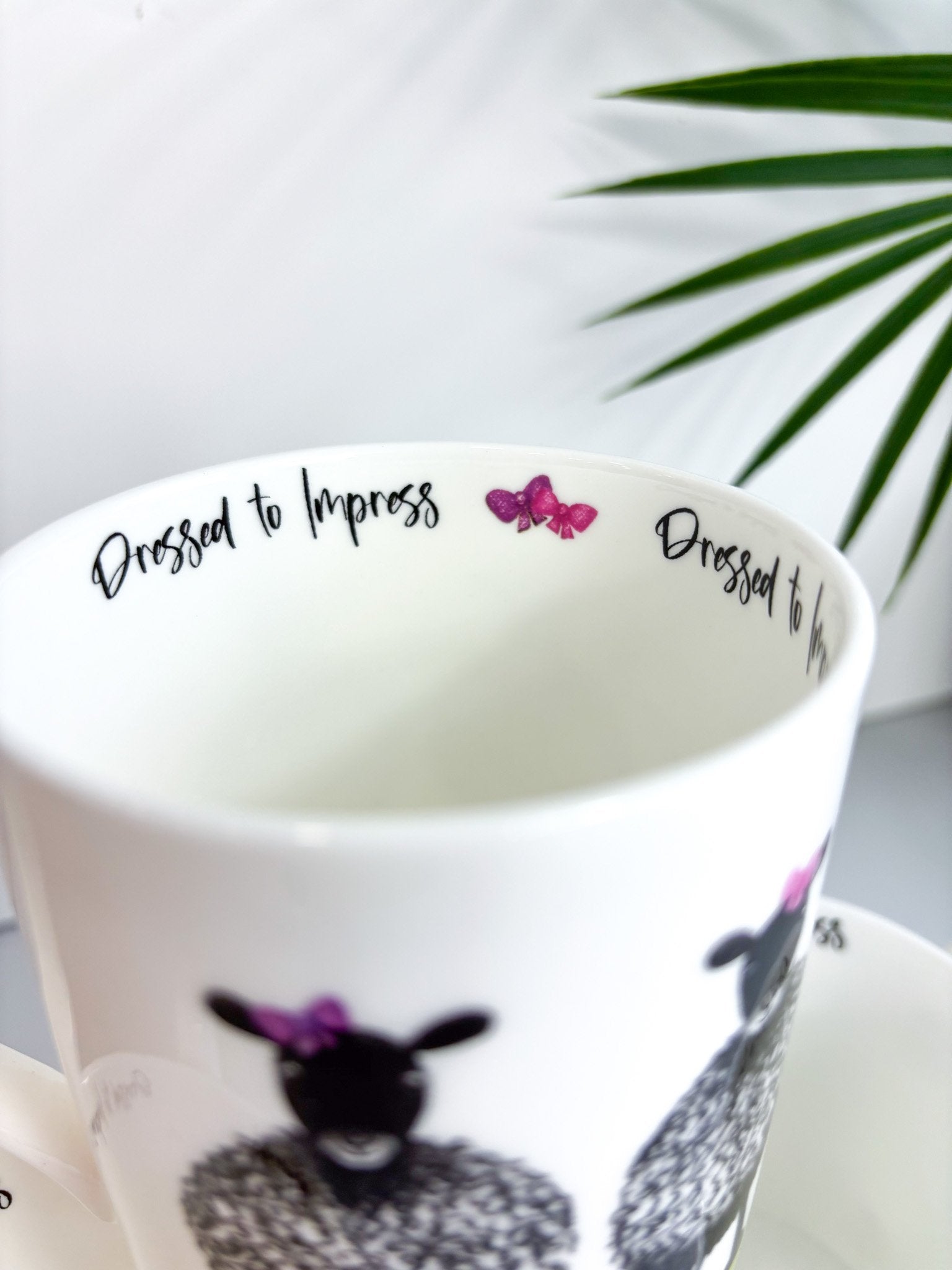 Savour your tea time with the 'Dressed to impress' Fine Bone China Mug by Lucy Pittaway.