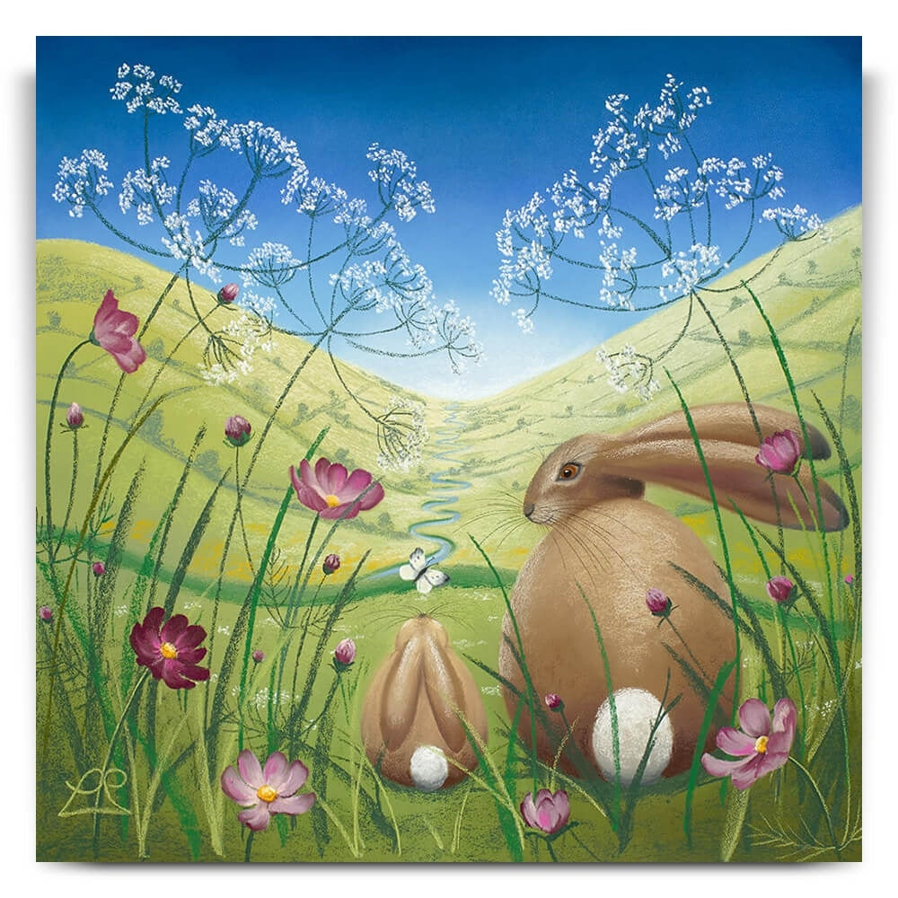 This picture depicts the sweet innocence of a young one that sees something new for the first time and is totally distracted by it. Mum waits while the young hare explores its new surroundings.