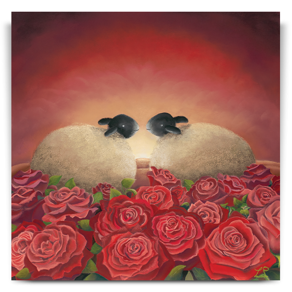Ewe are the one, a piece full of romance and warmth. A bed of red roses surrounds two sheep who have clearly fallen for each other and are lost in their own world together.