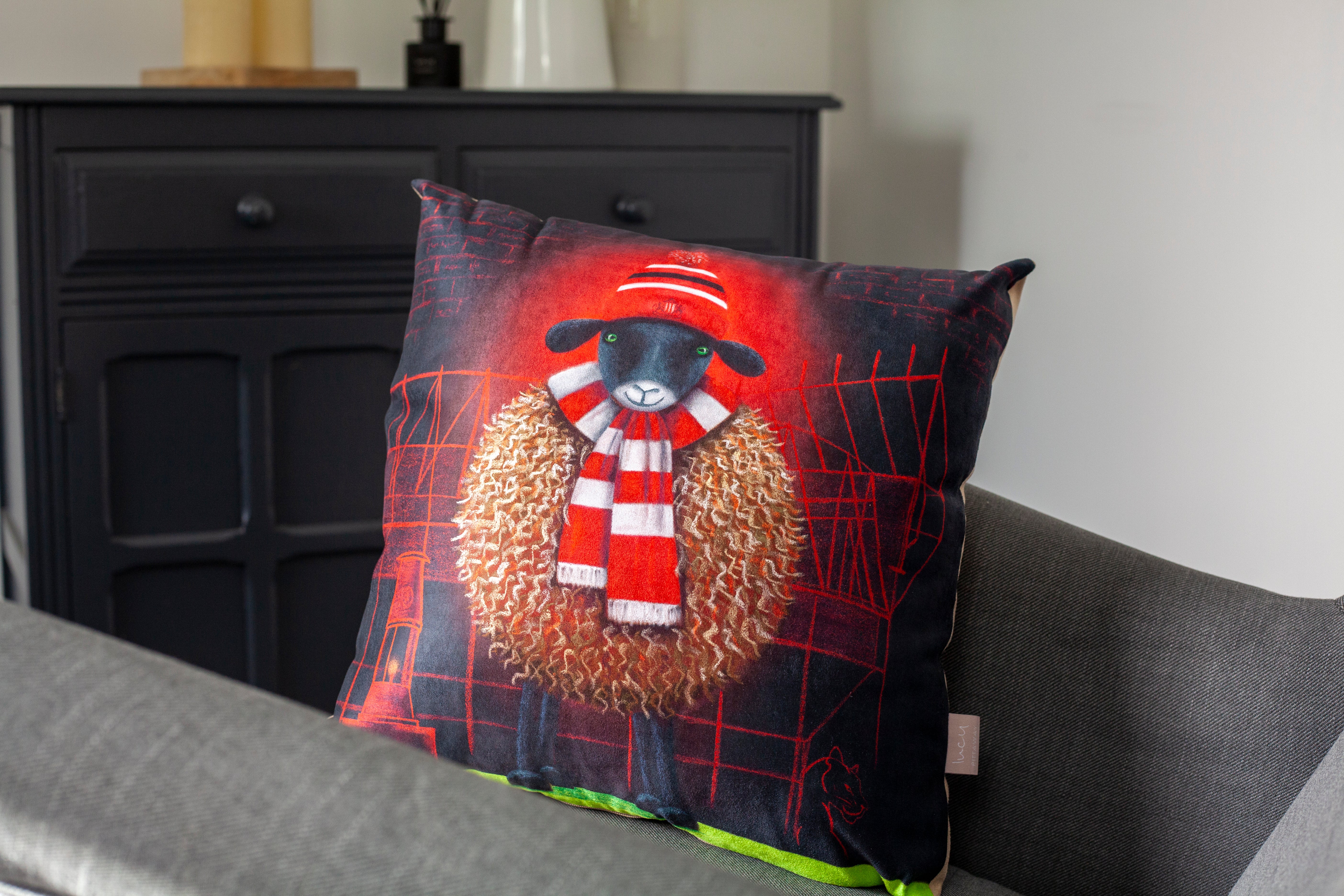 Ha'way the Lads, is now available on a soft, cuddly cushion.