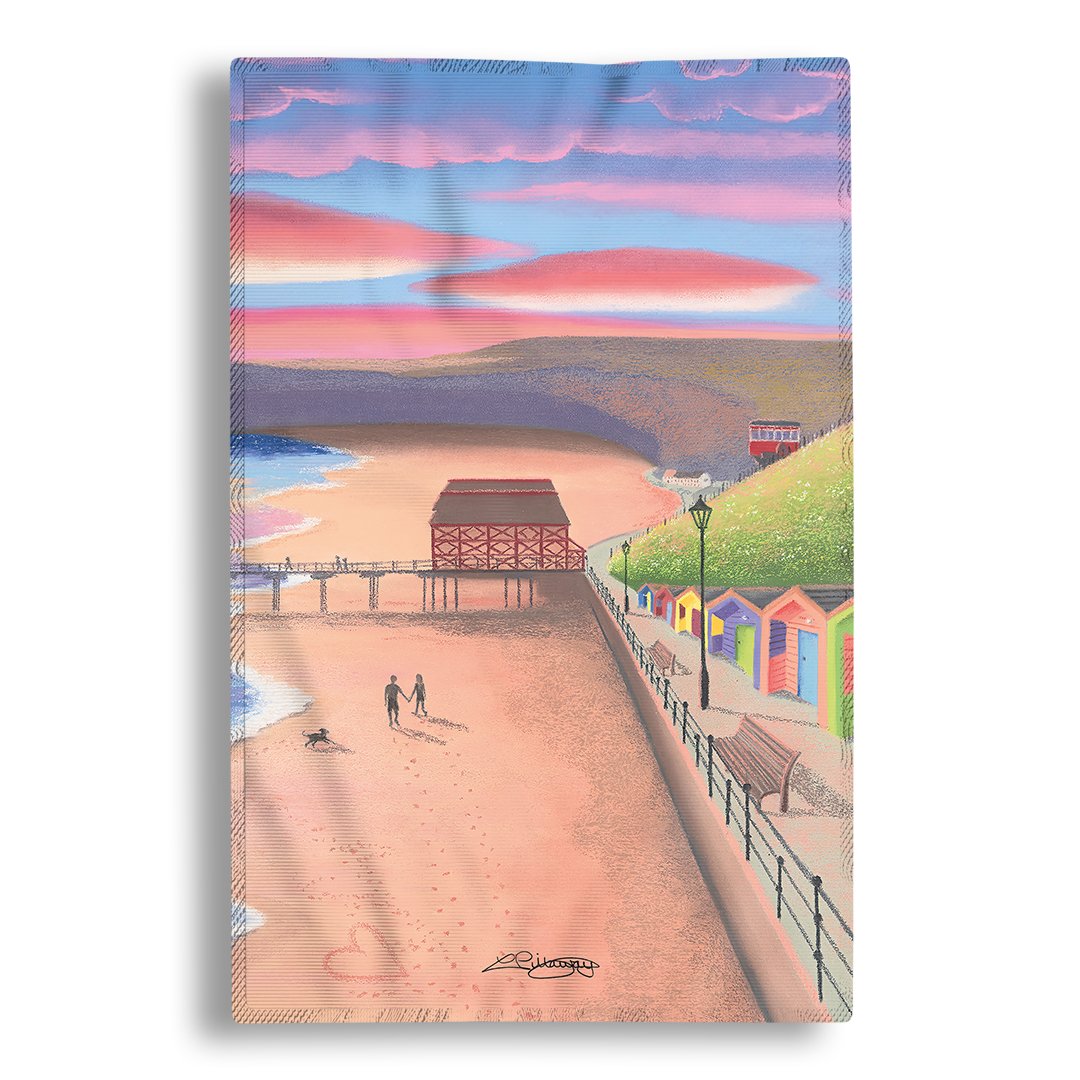 Dry your dishes in style with this Sunrise Stroll by the Sea design Tea Towel which is 100% cotton and colourfast, meaning there will be minimal fade of colours over time.