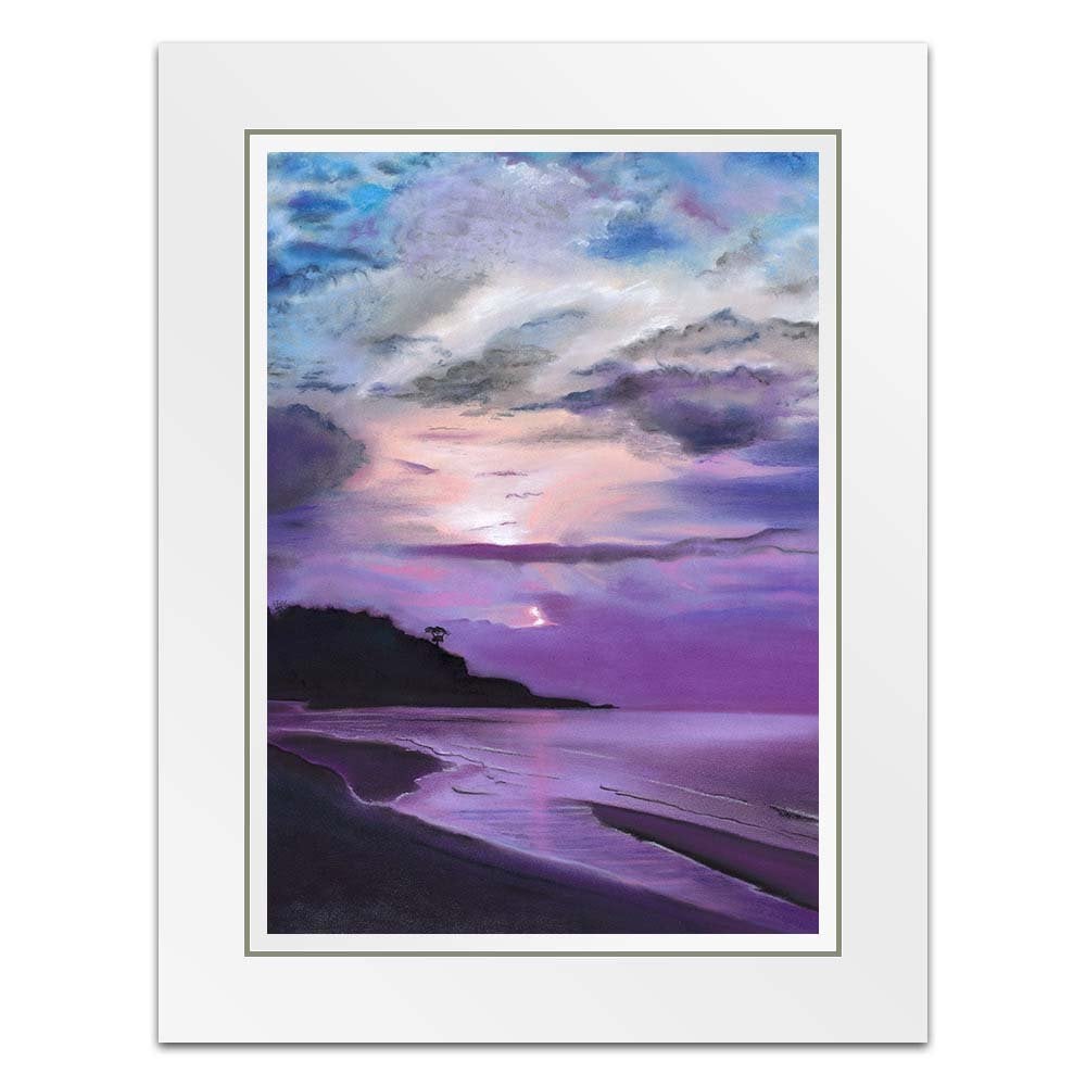 Inspired from my travels around the world, this painting was created from a photo I took whilst travelling through Malaysia and staying on the island of Langkawi. I enjoyed altering the colour palette to purple hues and capturing the dramatic skies of the beautiful sunsets there.