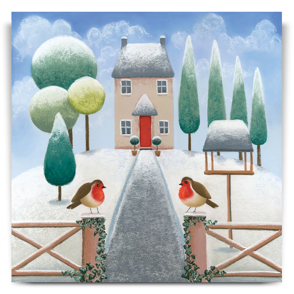It's a fresh and crisp morning and a blankets of snow lays on the ground. The chill in the air isn't affecting this pair of Robins. They are happy to be home for the winter.