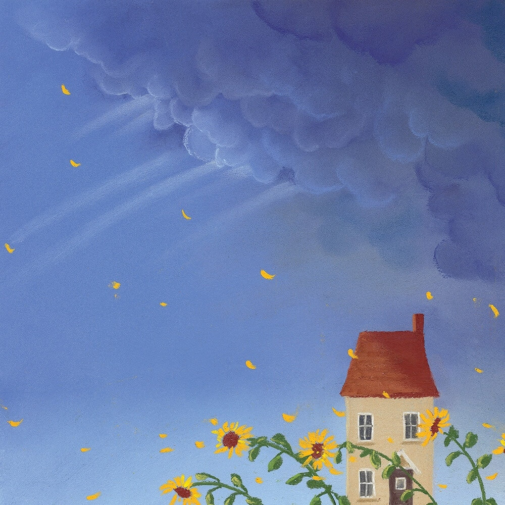 A group of Sunflowers surround a house but only just manage to withstand the forceful winds of the typical British weather. They are some of my favourite flowers but clearly not the most hardy!