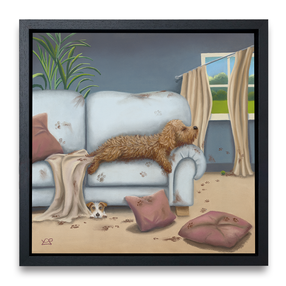 I purchased the beautiful framed print as a gift for a collector. The picture will look fantastic hung and with which all dog owners can equate to raise a smile. Very well packaged for delivery and wrapping
