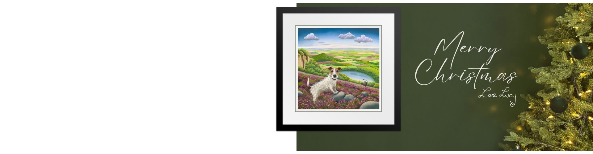 The painting captures a scene close to Sutton Bank, with Gormire Lake nestled below and patchwork fields stretching into the distance. Lucy combined this striking North Yorkshire landscape with two of Julian’s passions – Emmy and mountain biking – bringing them together in a scene that celebrates their bond. With Emmy front and centre amongst the heather and Julian riding in the background, it’s a personal and uplifting tribute to shared adventures.