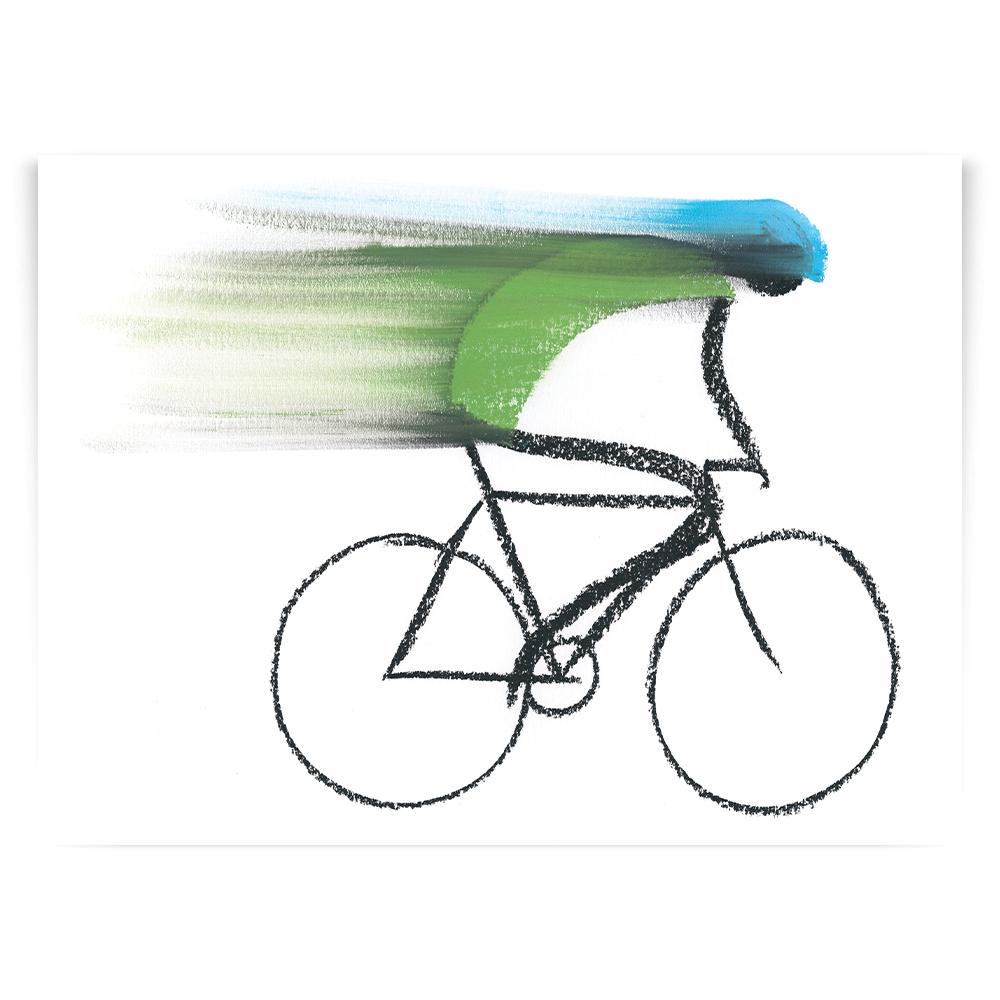 Passing by in the blink of an eye, this cyclist is built for speed. A simple sketch but it shows rapid movement that can be achieved on the flat, when the pedals are turned at speed. Out on the open road, the feeling of freedom is apparent.