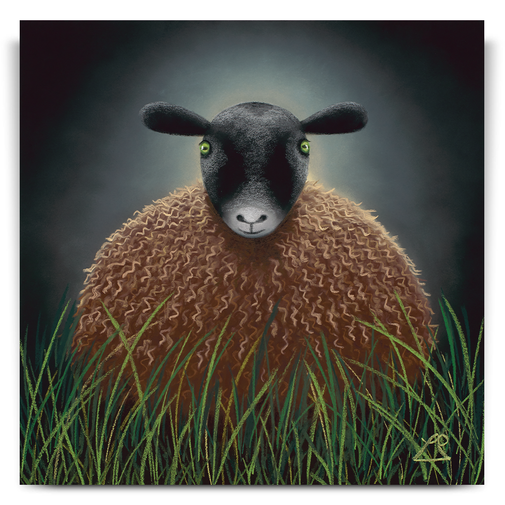 With piercing green eyes, this sheep has a strong presence, with a gaze that catches your eye!