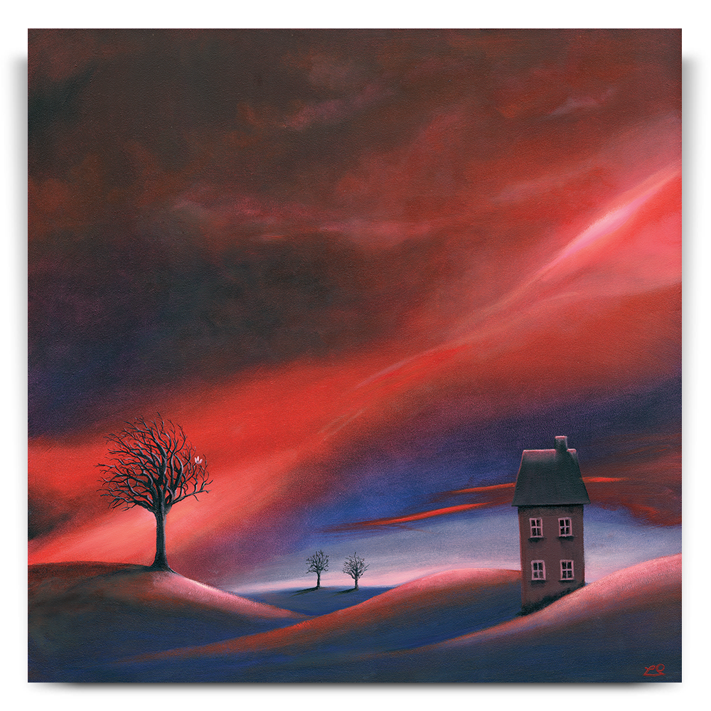 One of my earlier pieces, this represents a time when I was just beginning a fresh chapter in my life. The house represents me and the single flower in bloom on the otherwise dormant tree gives a glimpse of new life and promise.
