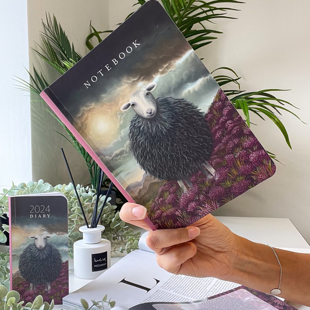 Introducing Lucy's Herdy Soul artwork, elegantly featured in this exquisite perfect-bound notebook. Ideal for capturing your thoughts, plans, and projects.