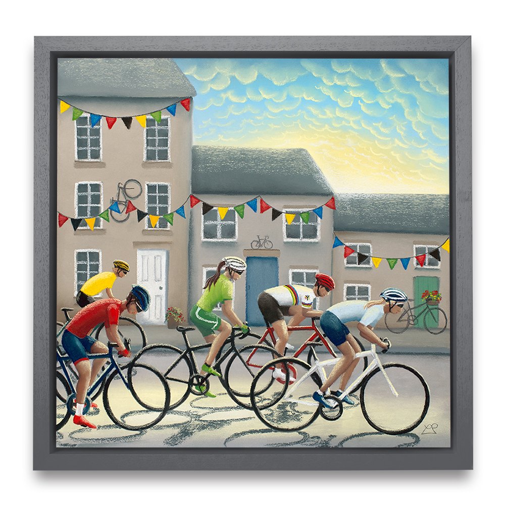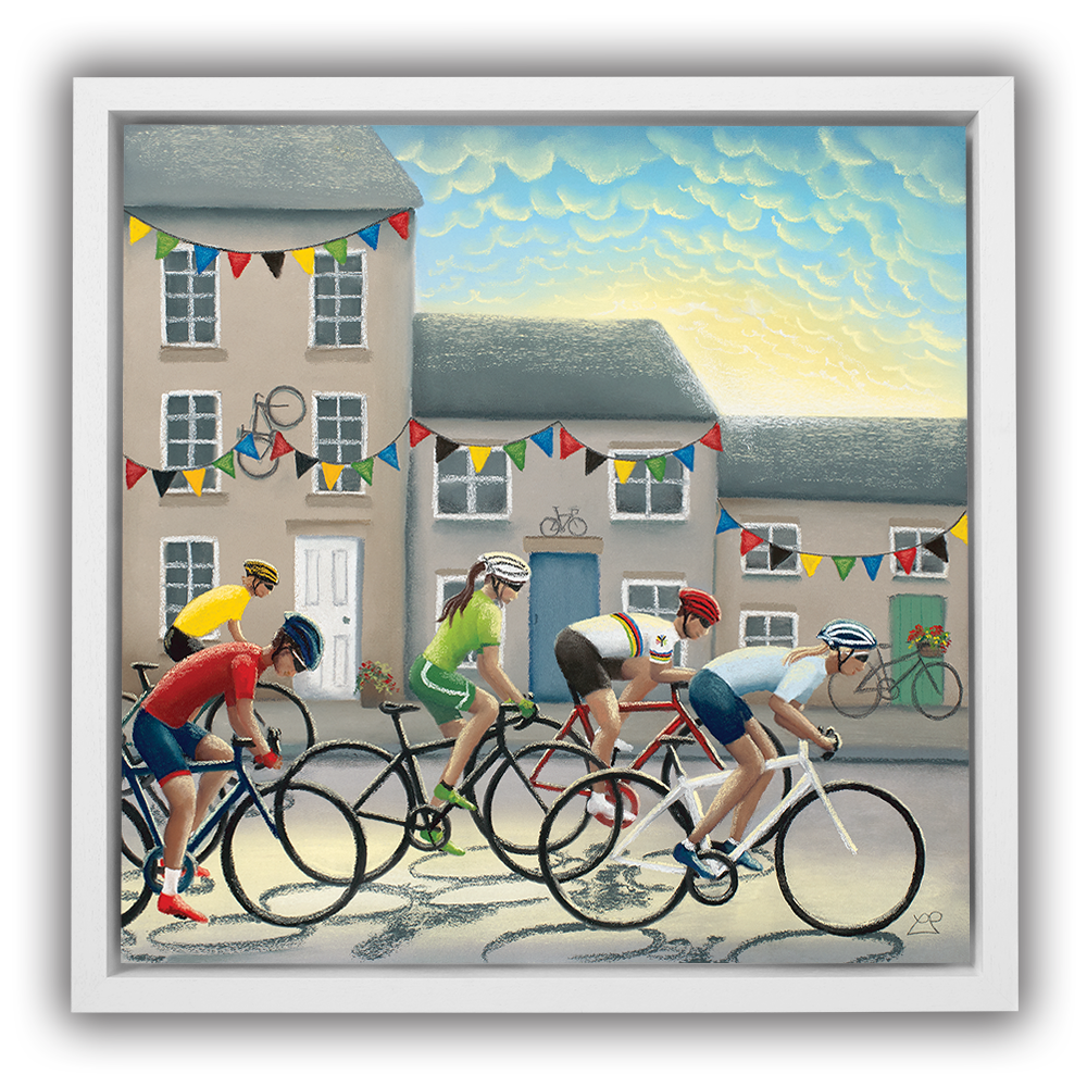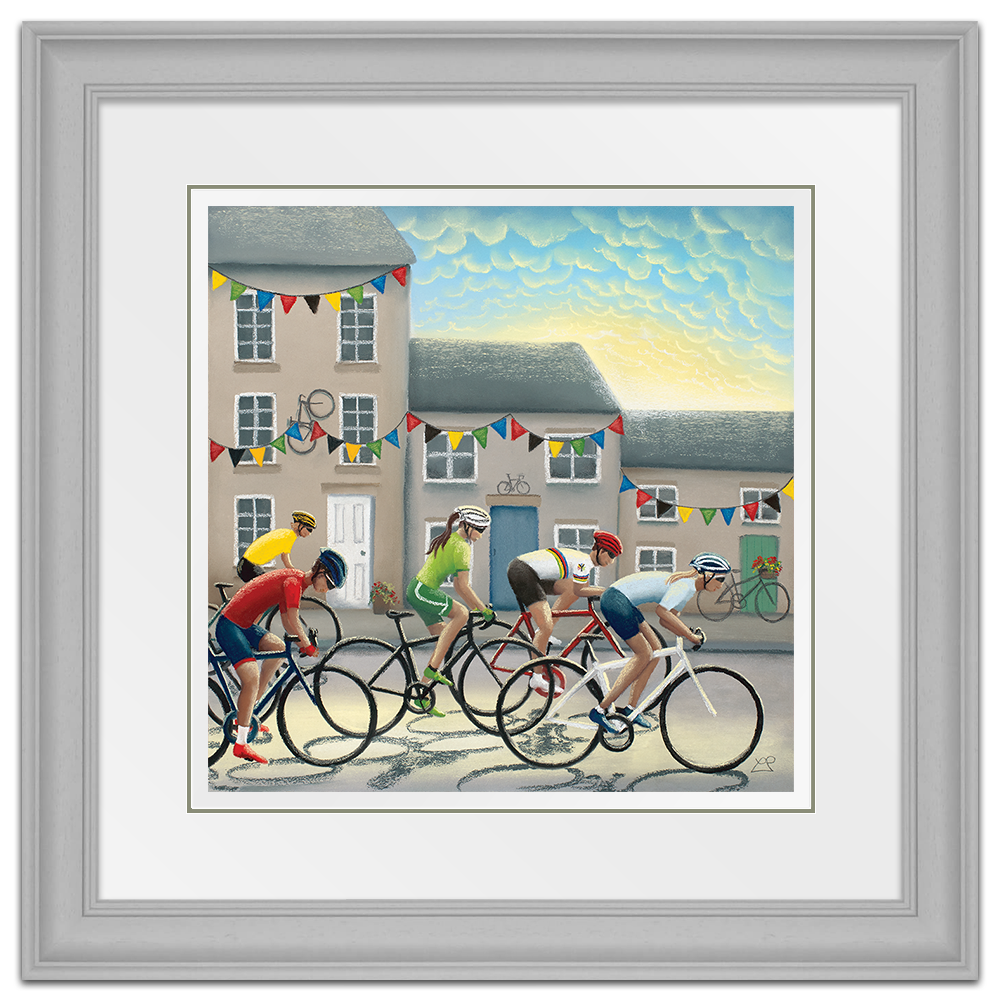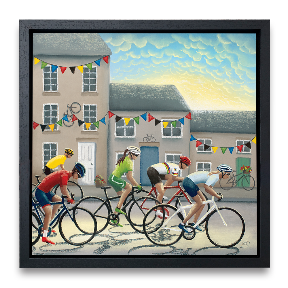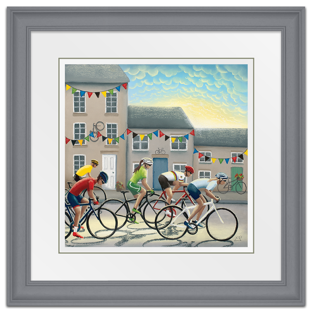 In 2019, Yorkshire hosted the UCI Road World Championships and as part of this, it also hosted the 'Team Trial Mixed Relay Race'. This picture includes male and female riders battling it out against one another in front of a Yorkshire town backdrop, decorated with bunting and bikes in support of the riders as they flash through at speed.