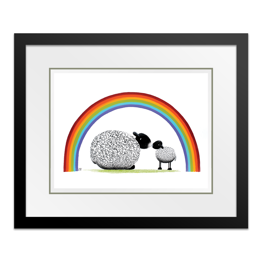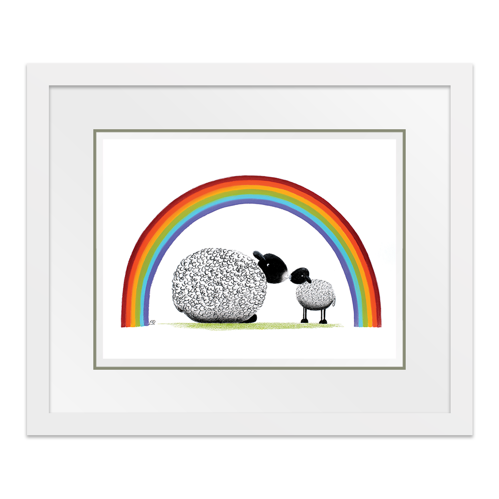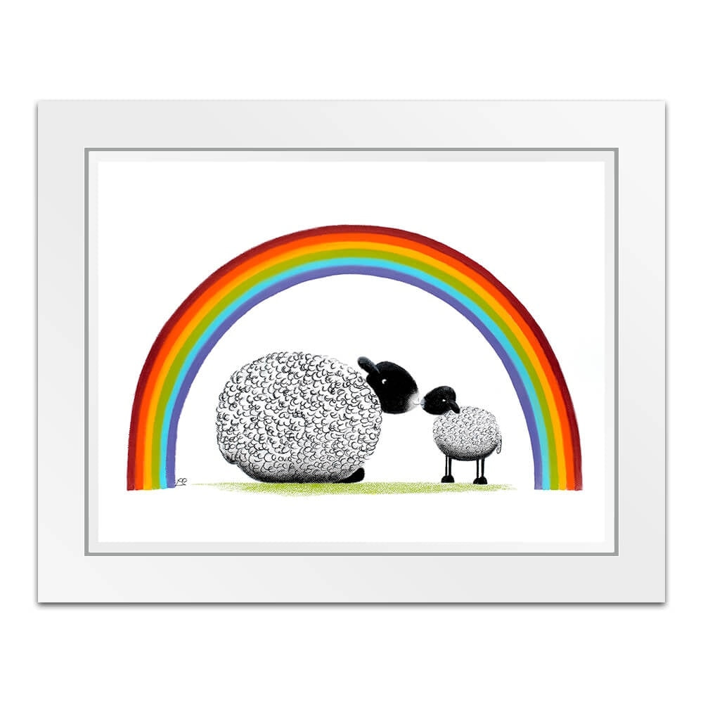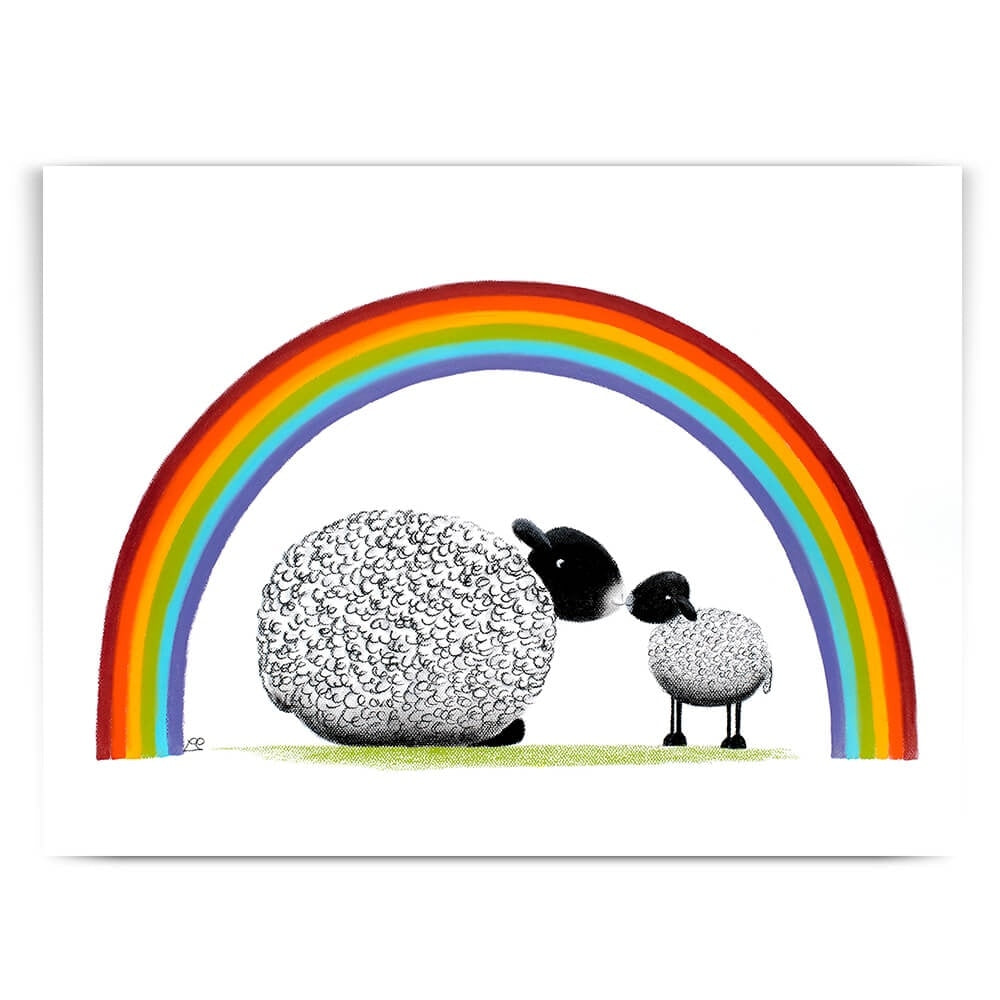 Bonding together under a brightly coloured rainbow, mother and child share a tender moment together. The mothers love for her little lamb is pure and simple and unwavering and she and baby share a special moment together.