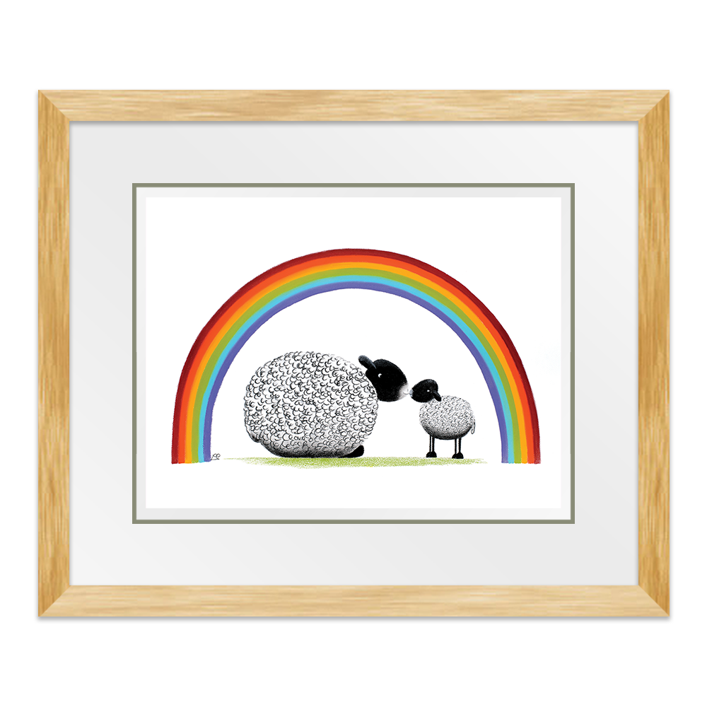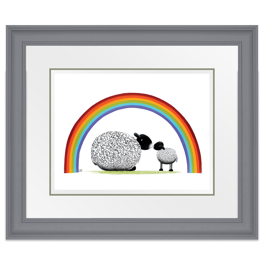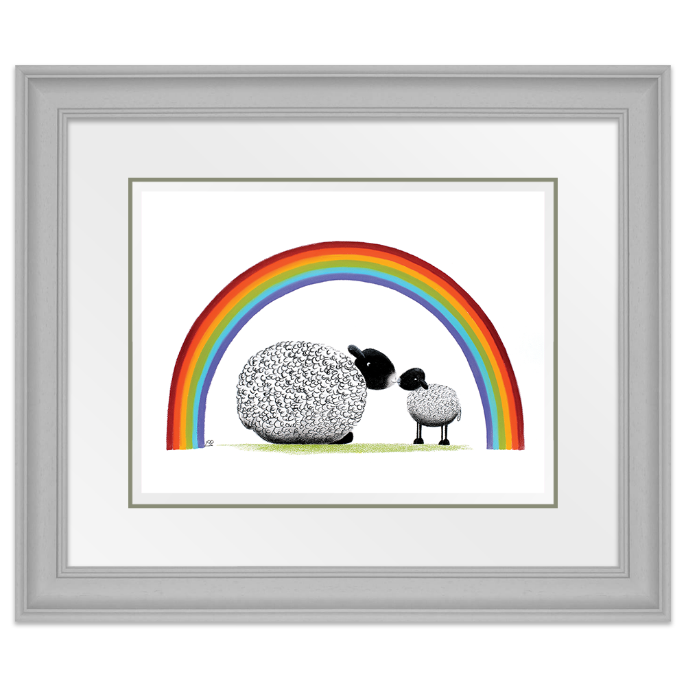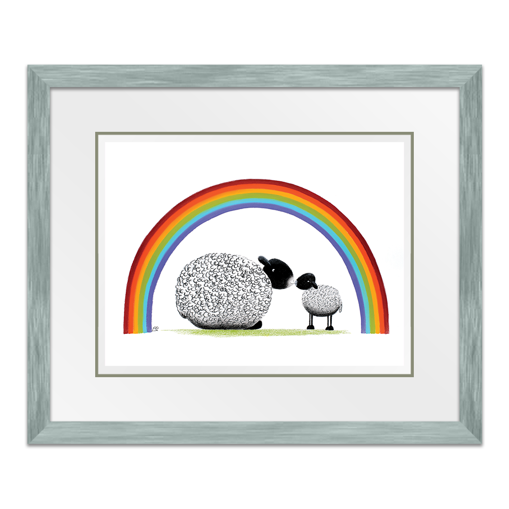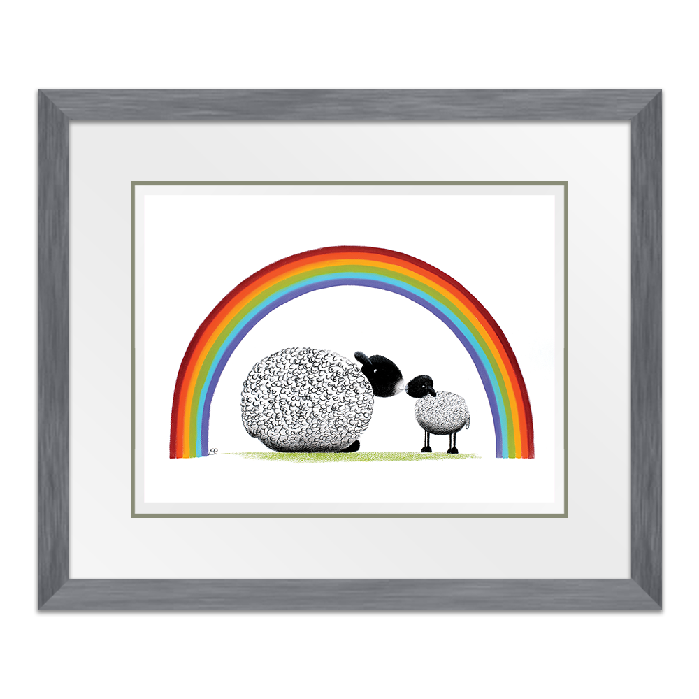 Bonding together under a brightly coloured rainbow, mother and child share a tender moment together. The mothers love for her little lamb is pure and simple and unwavering and she and baby share a special moment together.