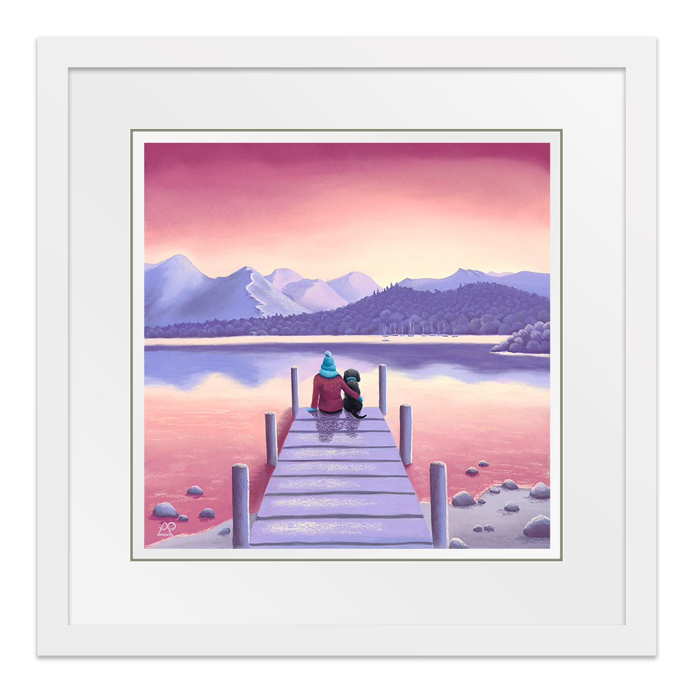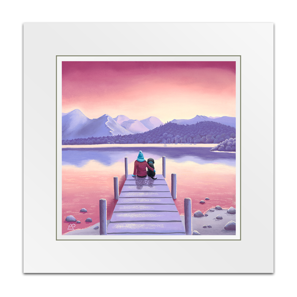Sitting in quiet contemplation, these two best friends are soaking up the stunning view that sits before them. Not a ripple on Derwentwater, as they sit still beneath the majestic mountains of Cat Bells and Causey Pike, perfectly illuminated by the beautiful sunset. This is a little piece of heaven on earth. Created as the sequel to A Dog's Best Friend.