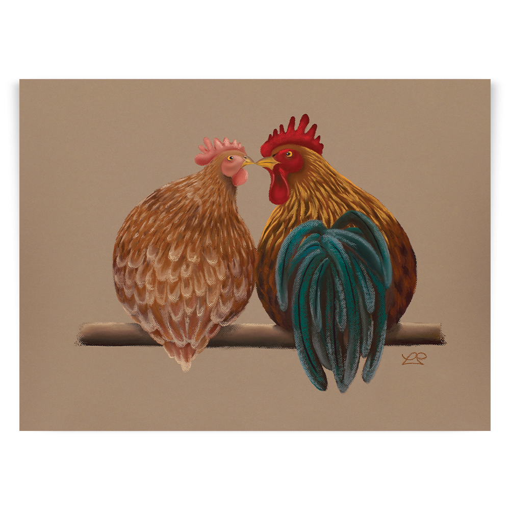 This Cockerel and his lady have made up after their recent fallout. Beak to beak, these chickens have forgotten all about why they weren't friends before! Created as the perfect partner to 'Ruling The Roost'.