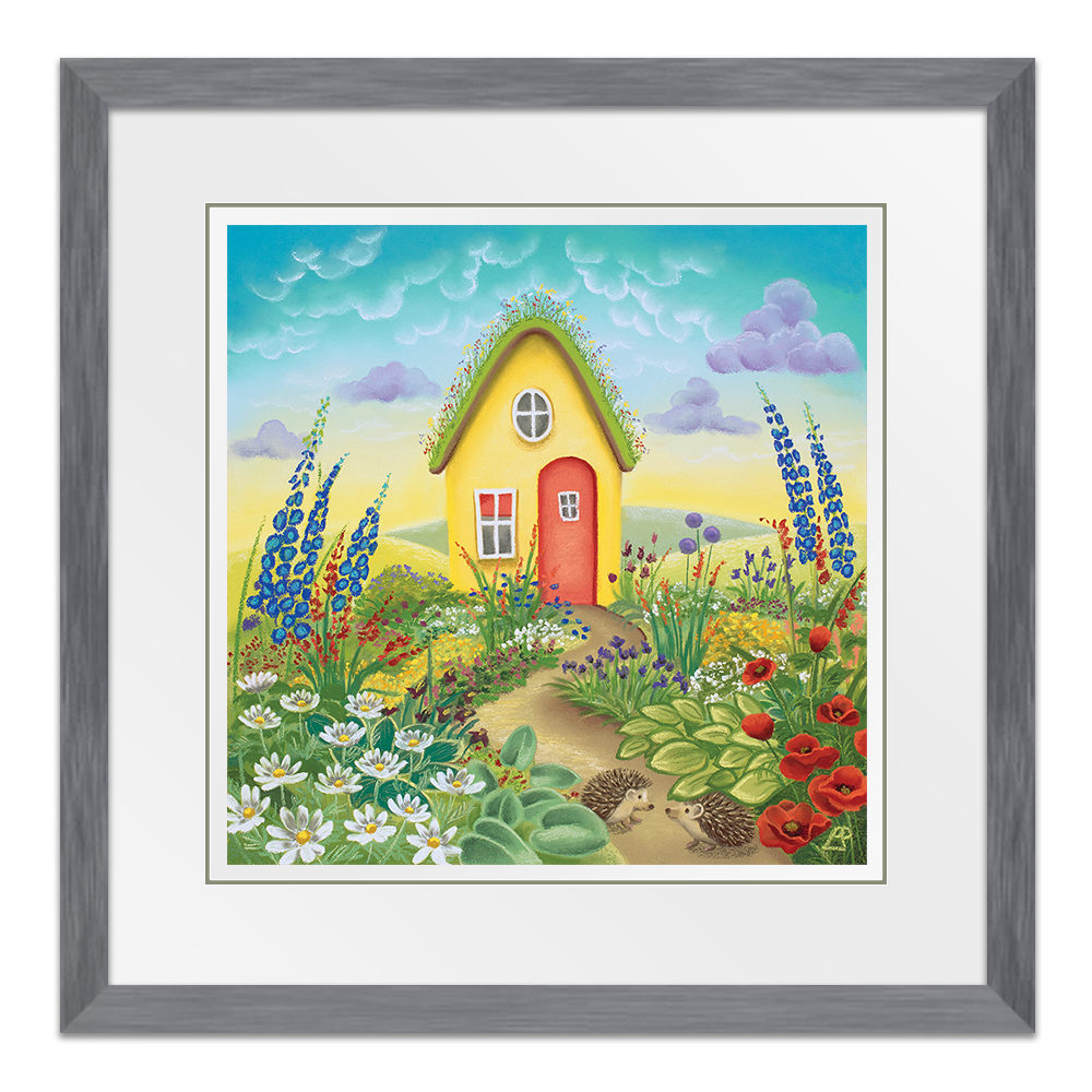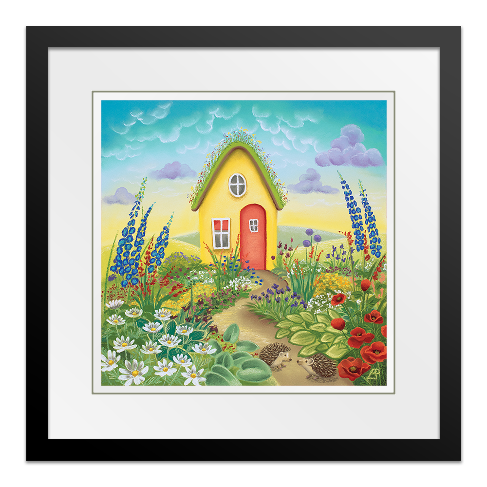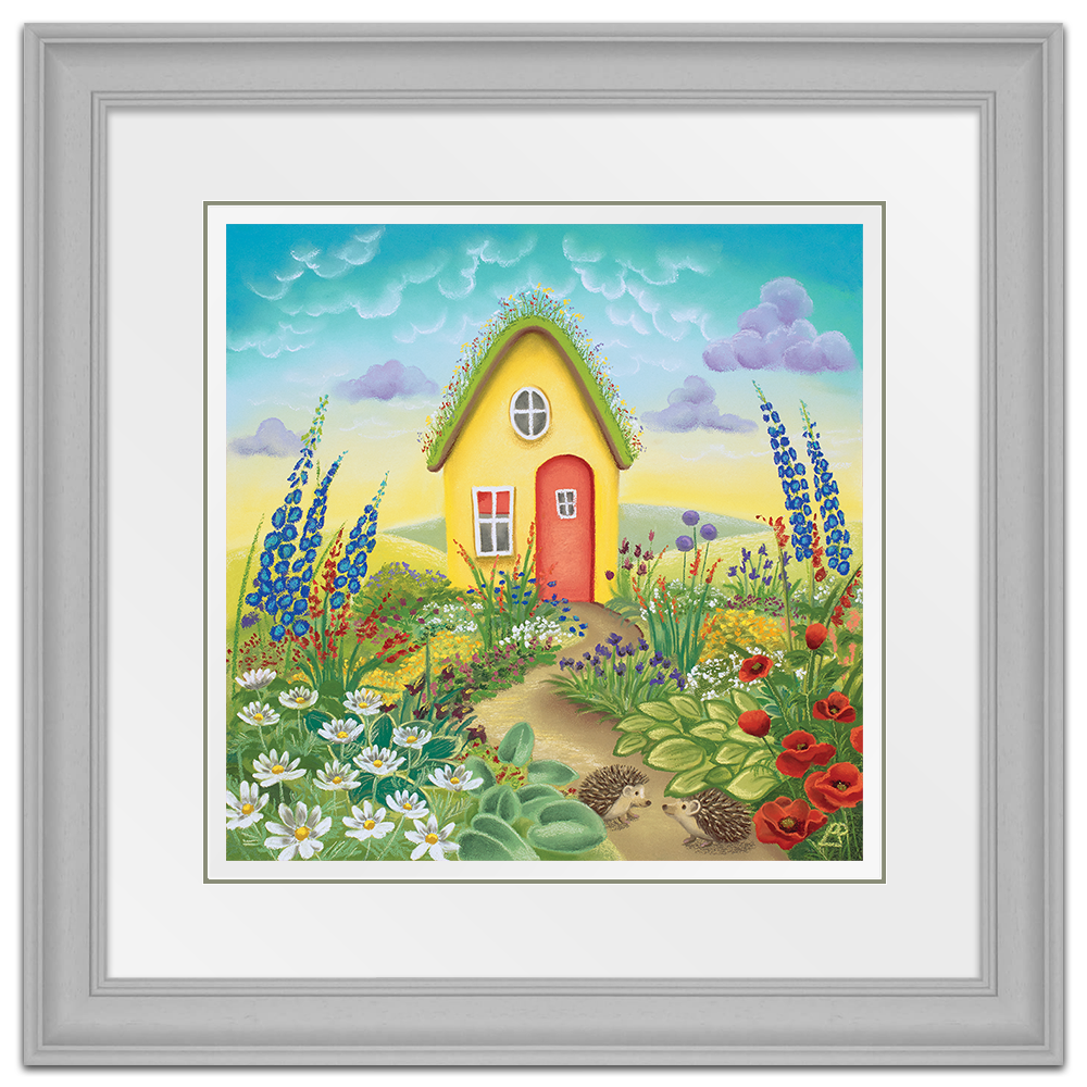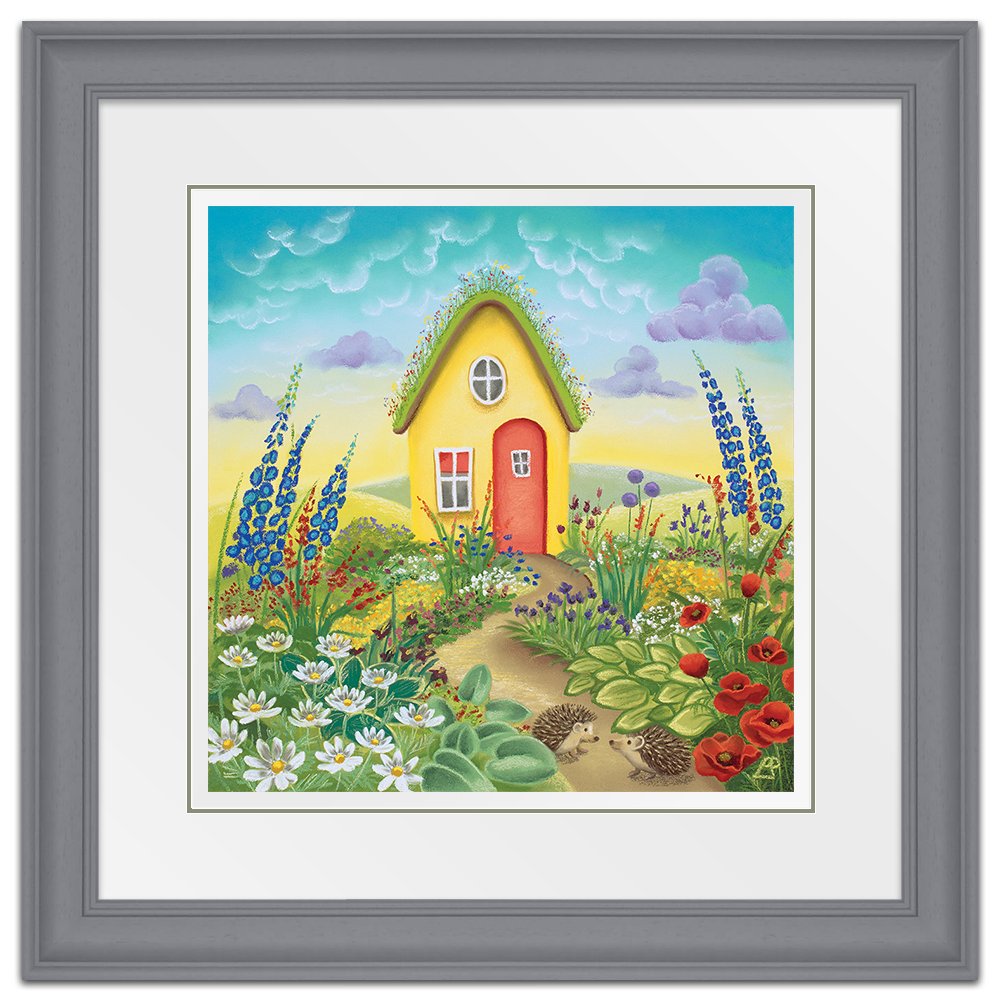 A cute, warm and inviting home set amongst a riot of brightly coloured flowers bursting with life. You can almost feel it’s positive aura. This is a happy home and with its cheerful colours, it makes the perfect sanctuary. Featuring two inquisitive hedgehogs.