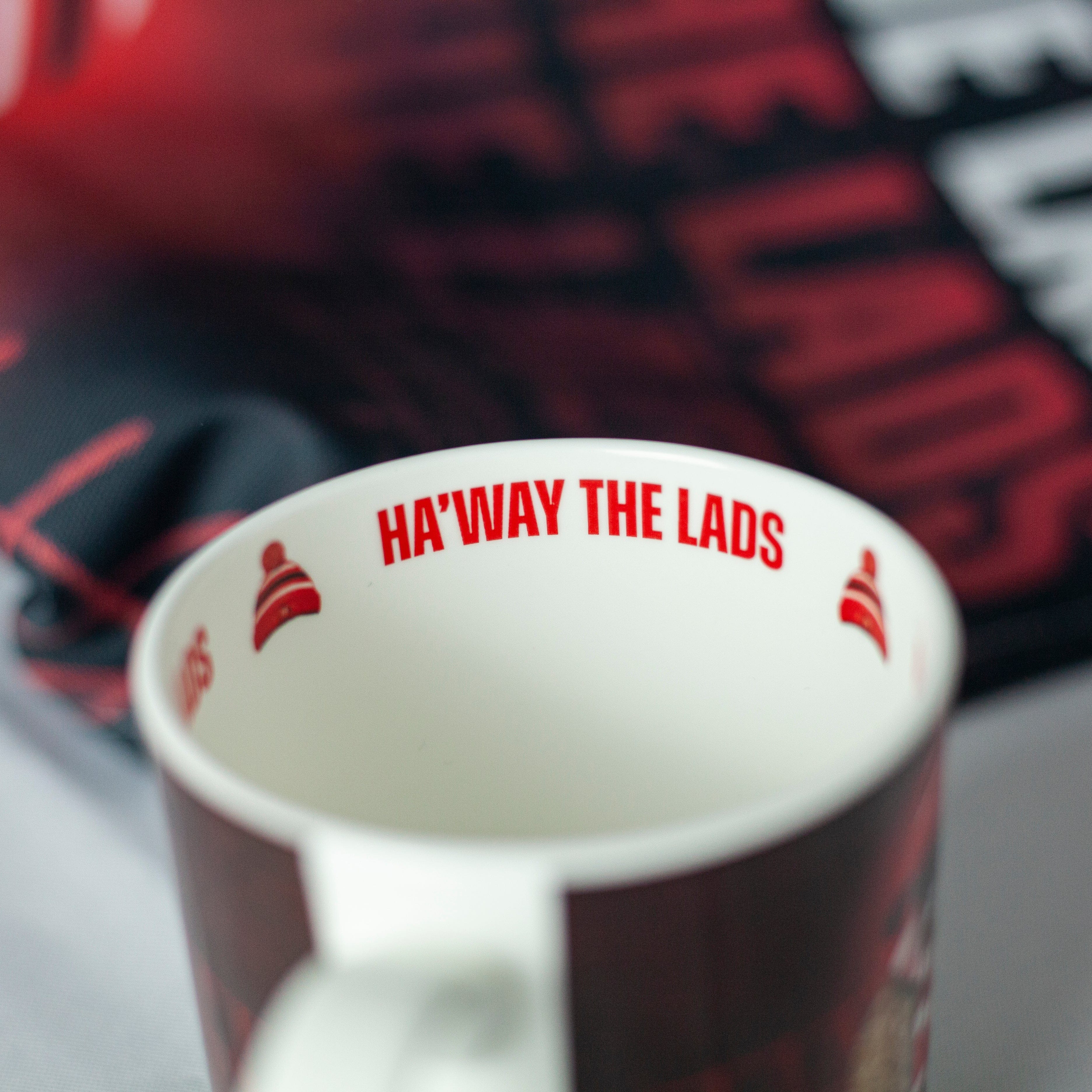 Savour your tea time with 'Ha'way the Lads' Fine Bone China Mug by Lucy Pittaway.