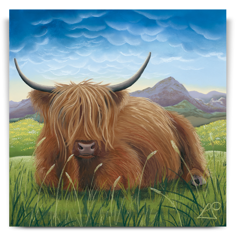 The perfect partner to Henrietta, Henry sits casually, resting in the grasslands beneath the Scottish Highlands.