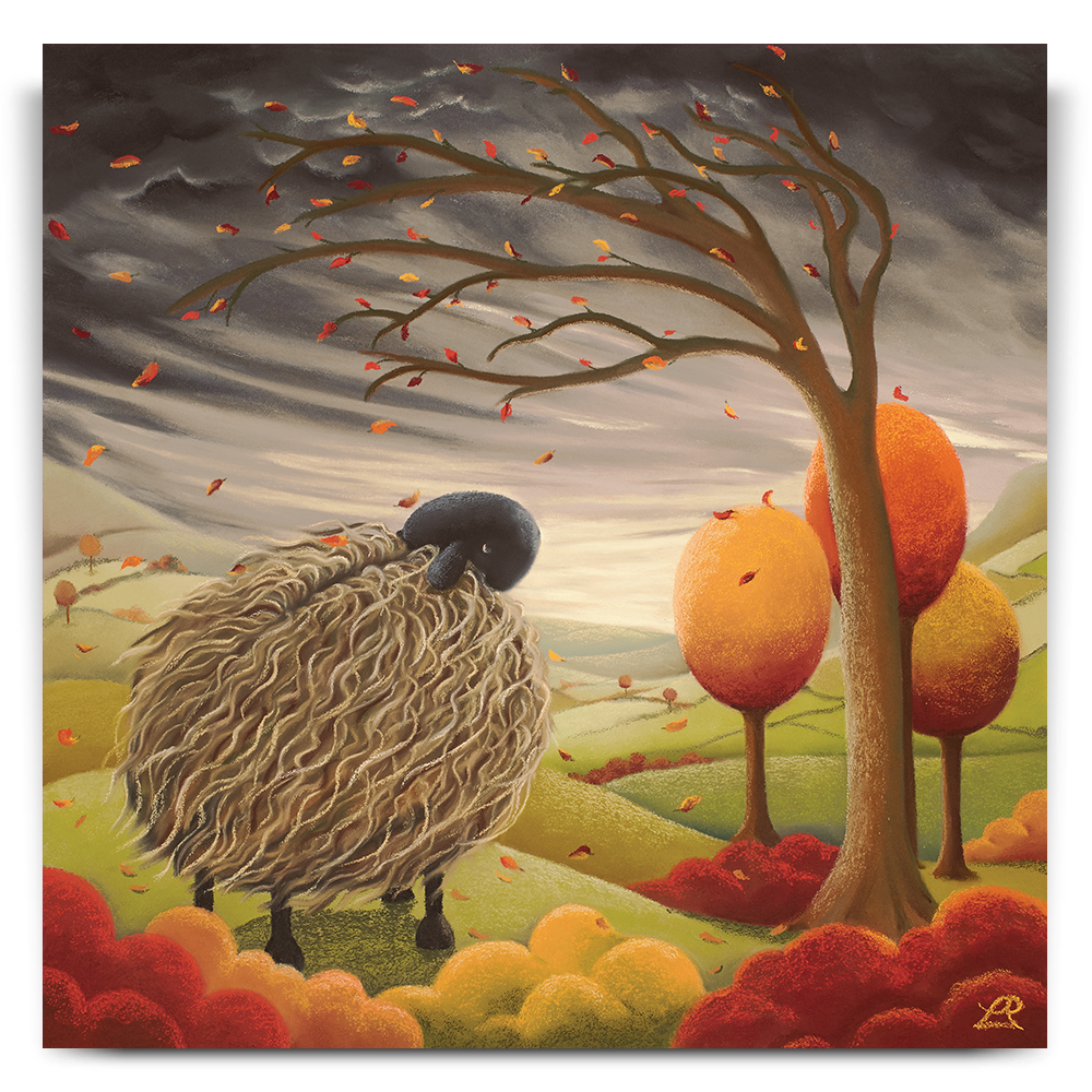 This piece reflects current times. We are weathering the storm of the global pandemic we find ourselves in, and although we’re a little bruised and battered, there is indeed light on the horizon. Although the sheep is windswept and battling the elements, it is looking towards a brighter, calmer spot on the horizon. The news of a new vaccine brings hope as we all look forward to better times ahead.