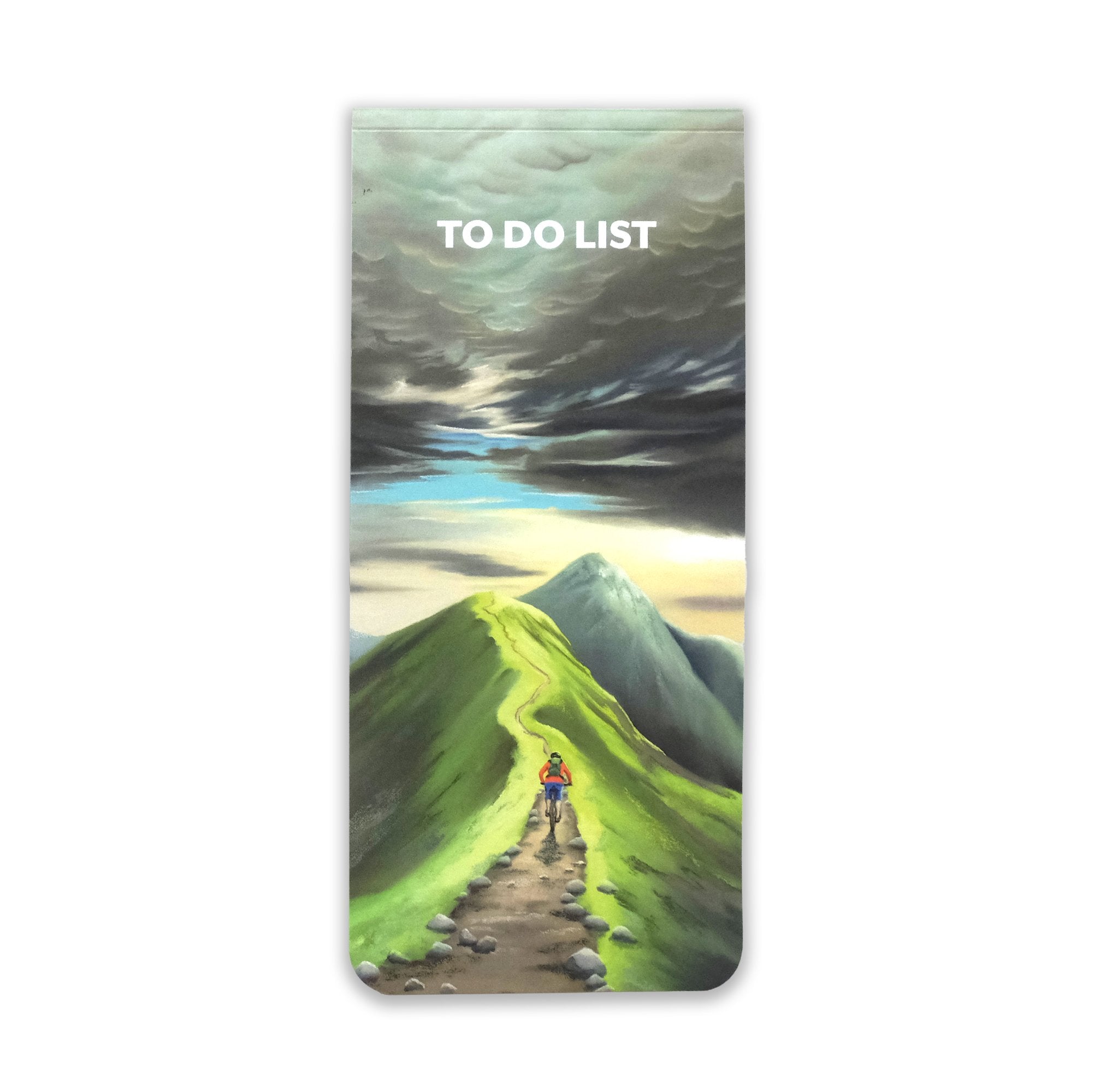 Introducing Lucy's King of the Mountain To Do List. A picturesque depiction of the mountainous landscape awaits to organise your tasks.