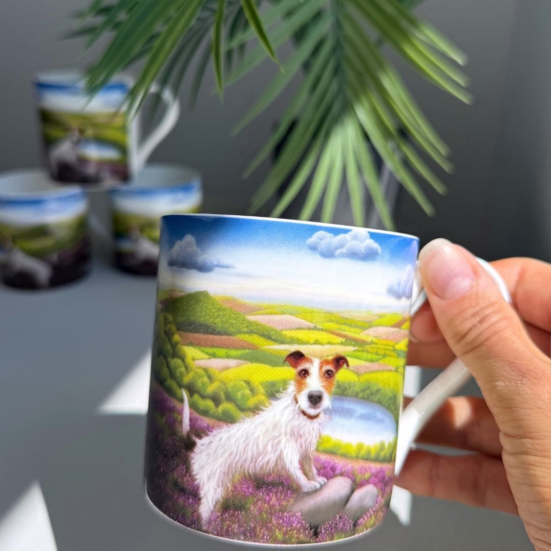 Enjoy a hot drink in Lucy Pittaway's 'One Vet and His Dog' fine bone china mug.