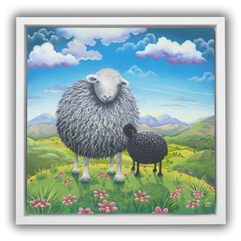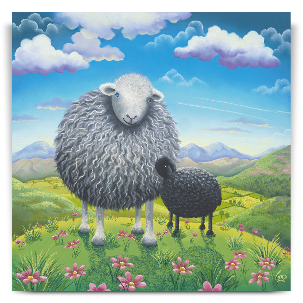 Inspired by the lush green valleys of the Lake District and its woolley inhabitants, this piece is all about new life in springtime and new adventures in the great outdoors. Here, a newborn is being taken out on their first outing as the sun shines and the flowers bloom, it’s a picture that brings a positive feeling about the seasons ahead.