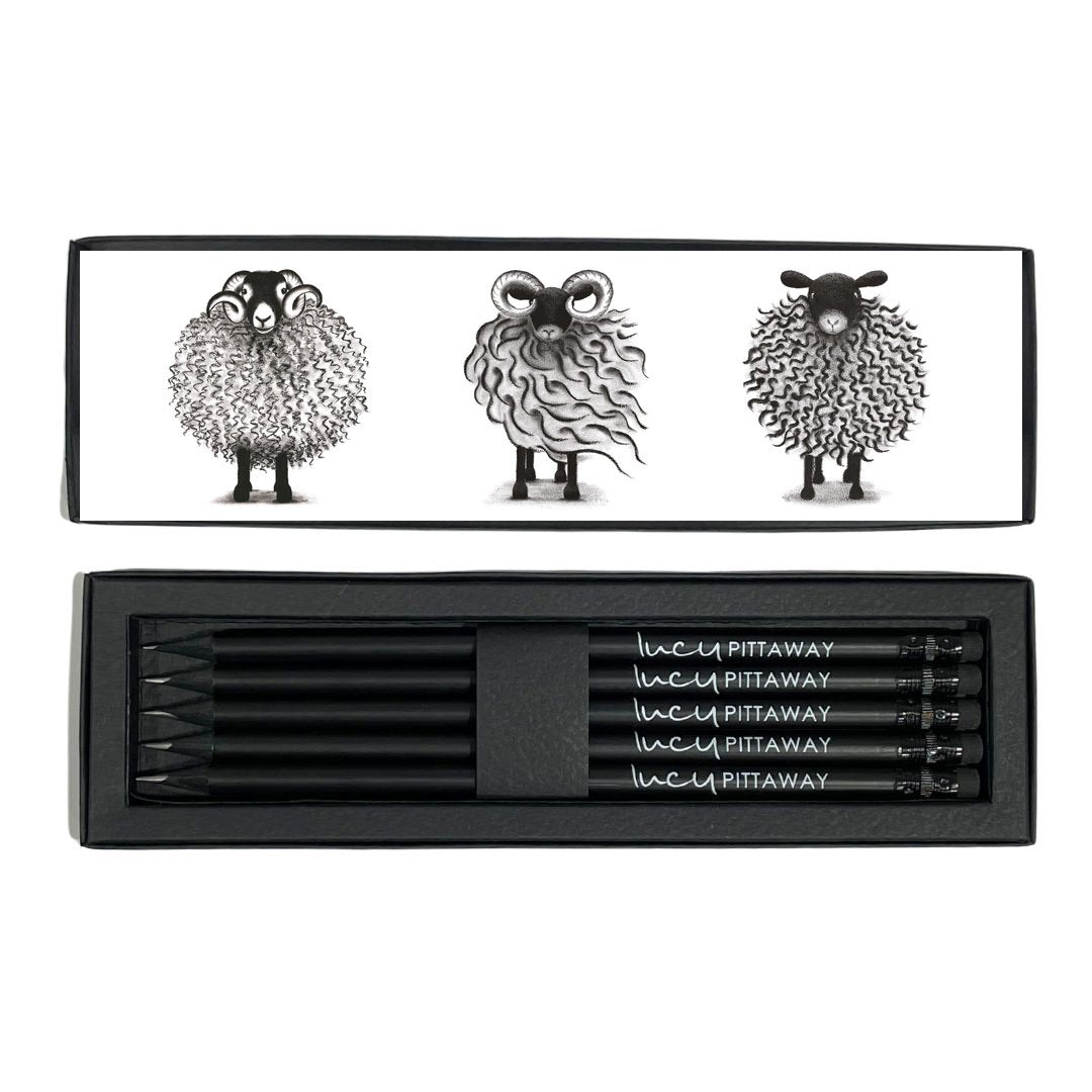 Lucy Pittaway HB Pencils with Rubber Tips – Pack of 5 in Black Presentation Case
