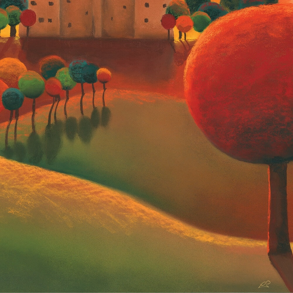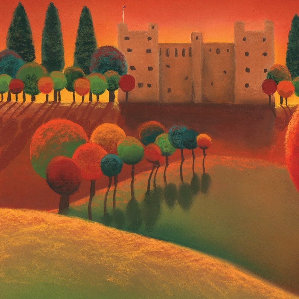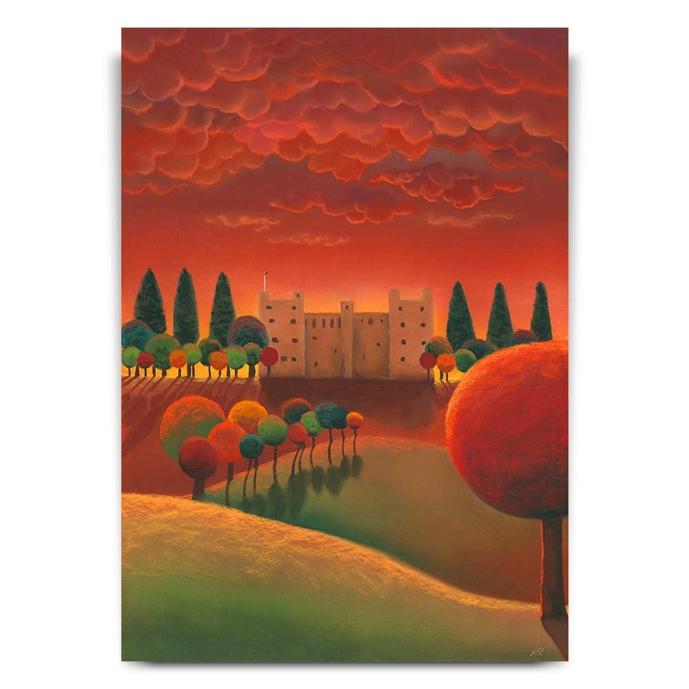 Bolton Castle in Wensleydale is the subject of this painting. Nestled deep in the Yorkshire Dales, it sits proudly under the rich red sky in an autumnal setting.