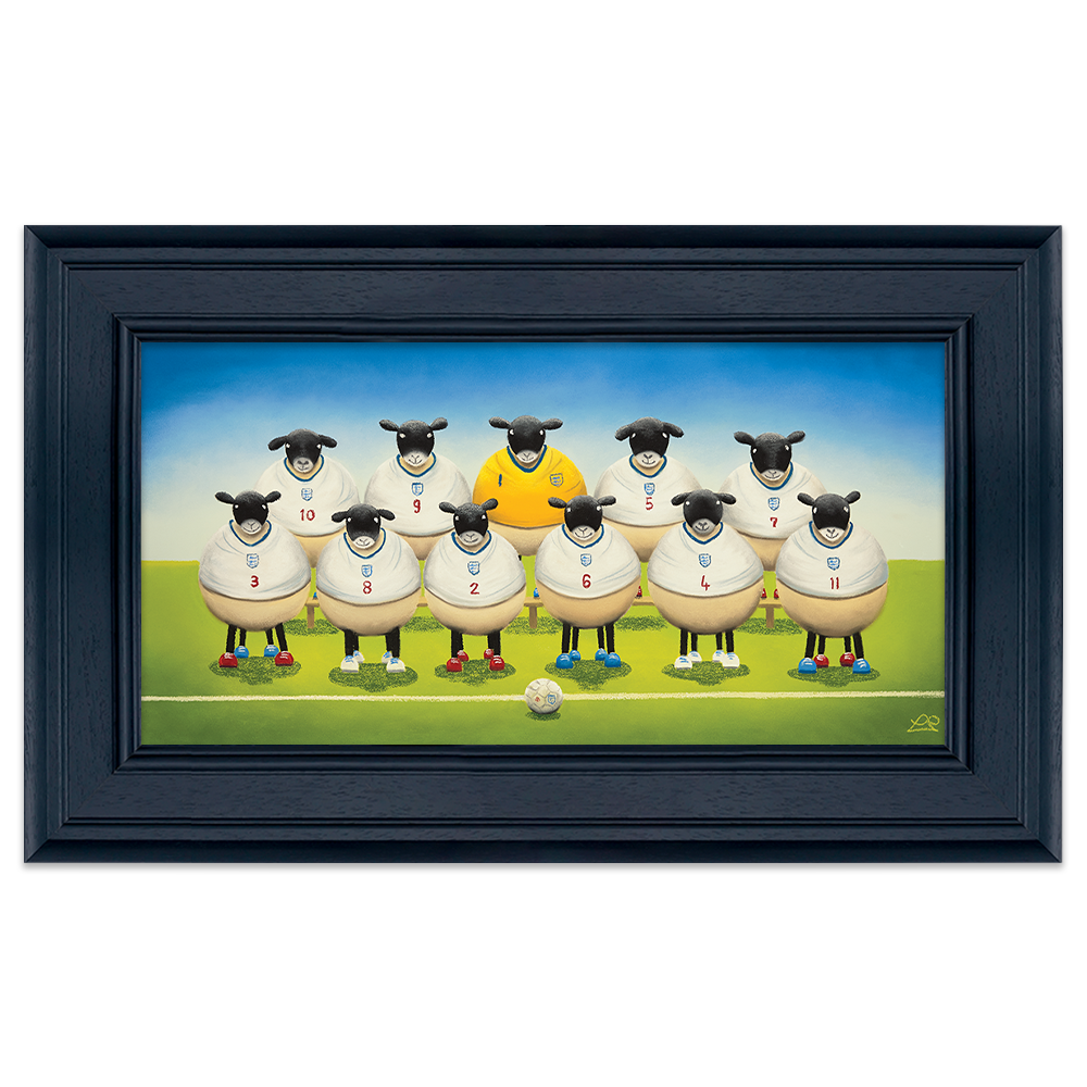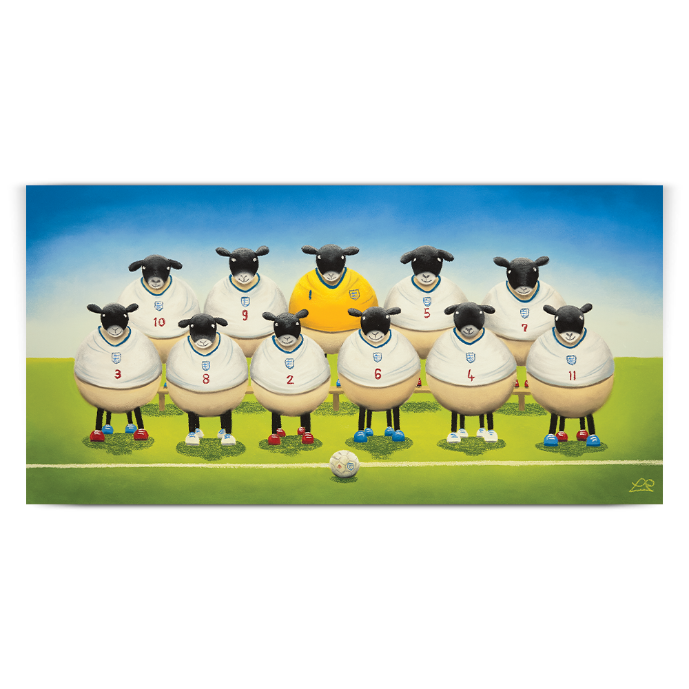What a flock the England football team make, a force to be reckoned with, just Baaaaaa-rilliant! This painting is about the fun and excitement that surrounds a nation when it qualifies for a finals and the country holds it's bated breath.