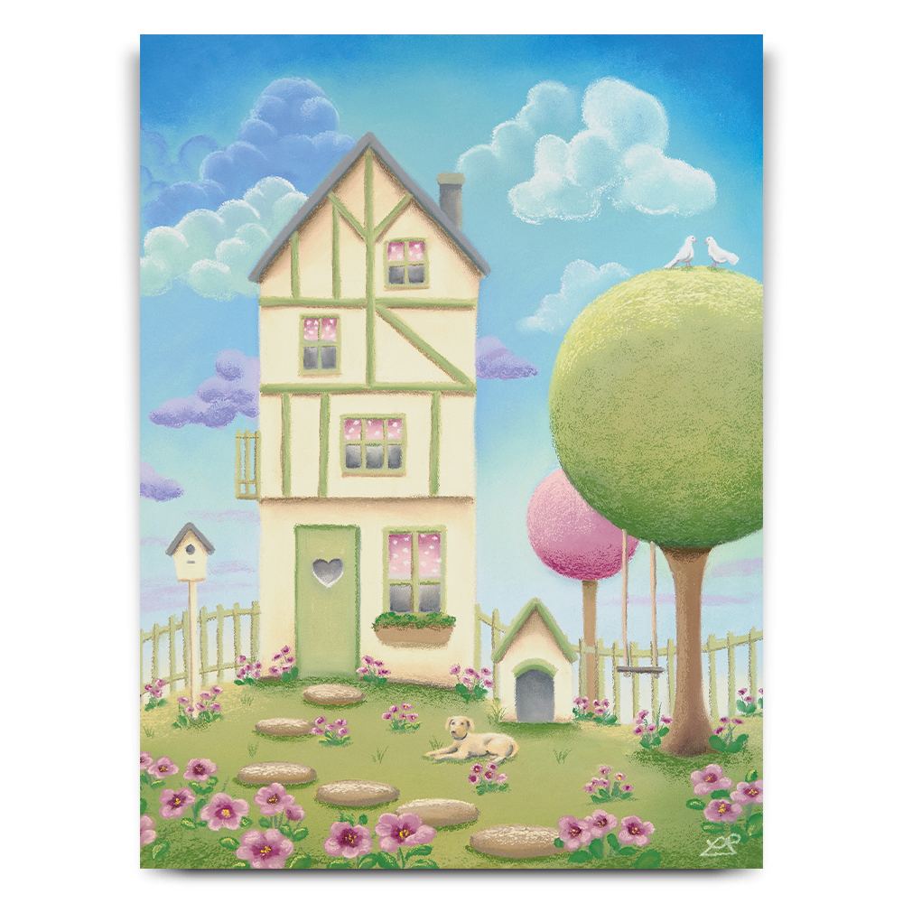 A house and garden full of love and life. From the beautiful flowers in full bloom to the white doves on the tree top, you’re always going to be welcome in this home. Have you spotted the lovely dog resting in front of the house?