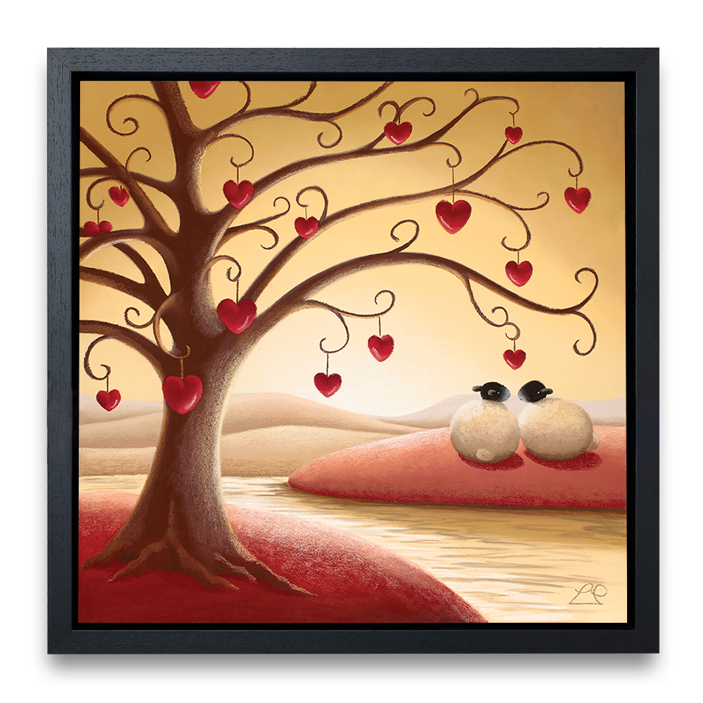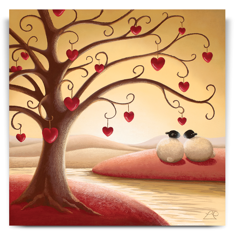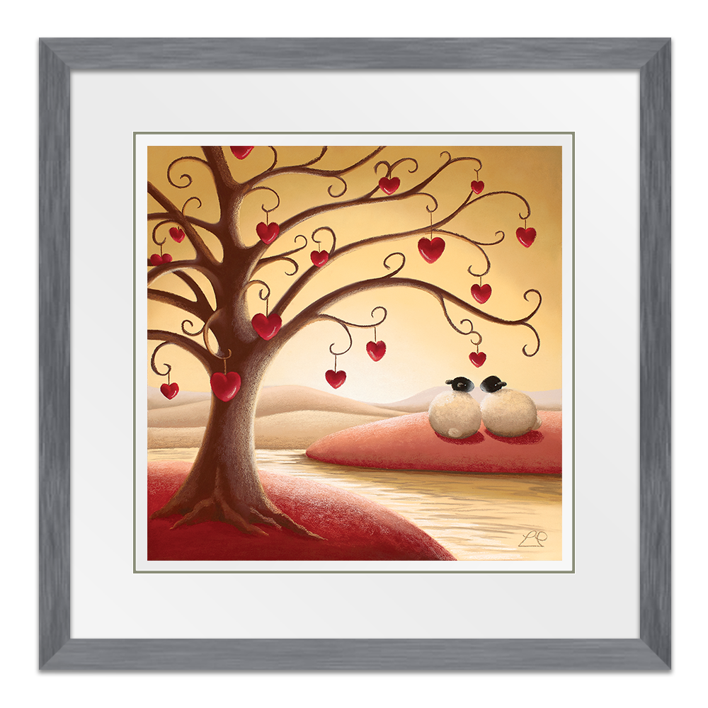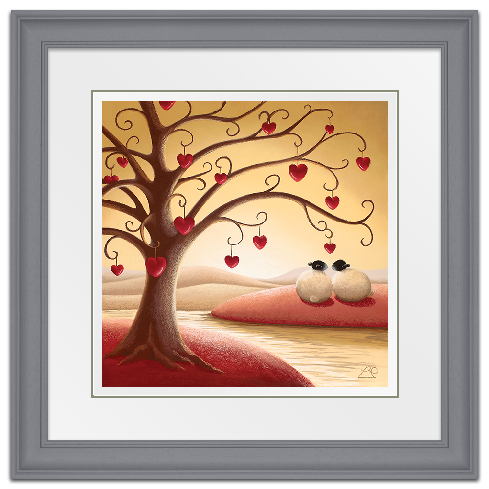'Under The Tree Of Love' nestles a couple that only have eyes for each other. from Lucy Pittaway's Sheep Art collection, the perfect piece of artwork to say 'I love you'.