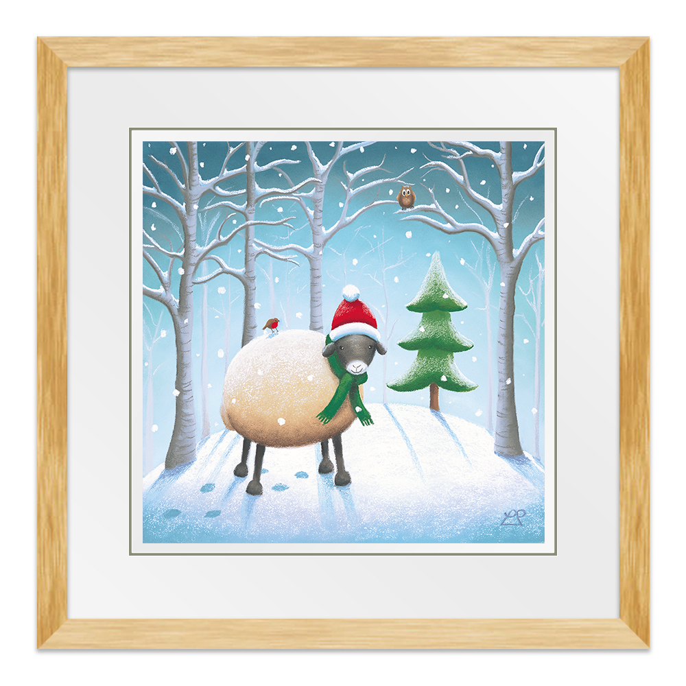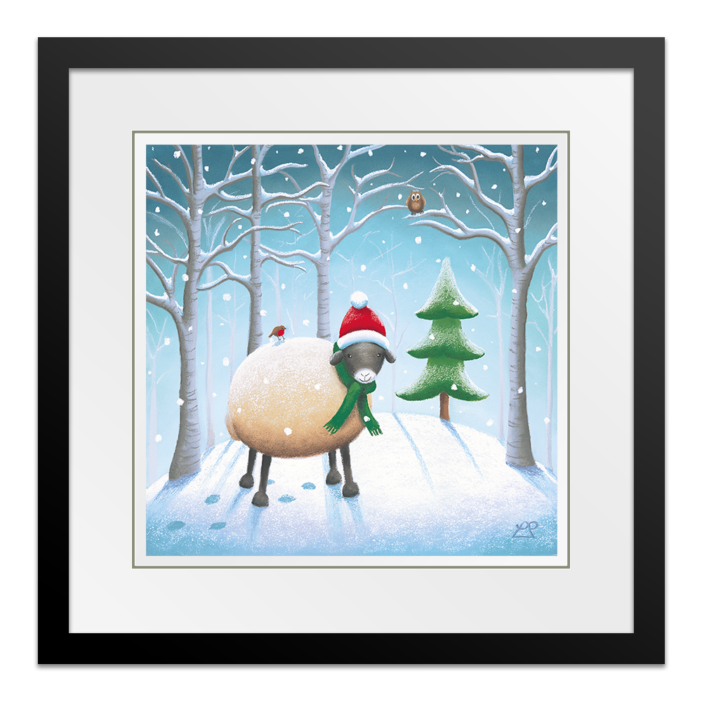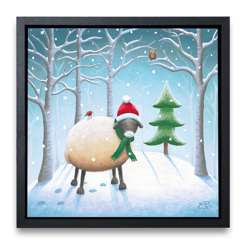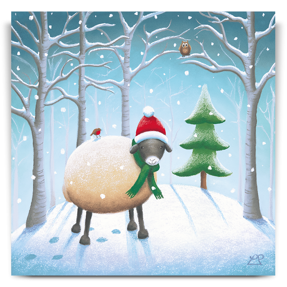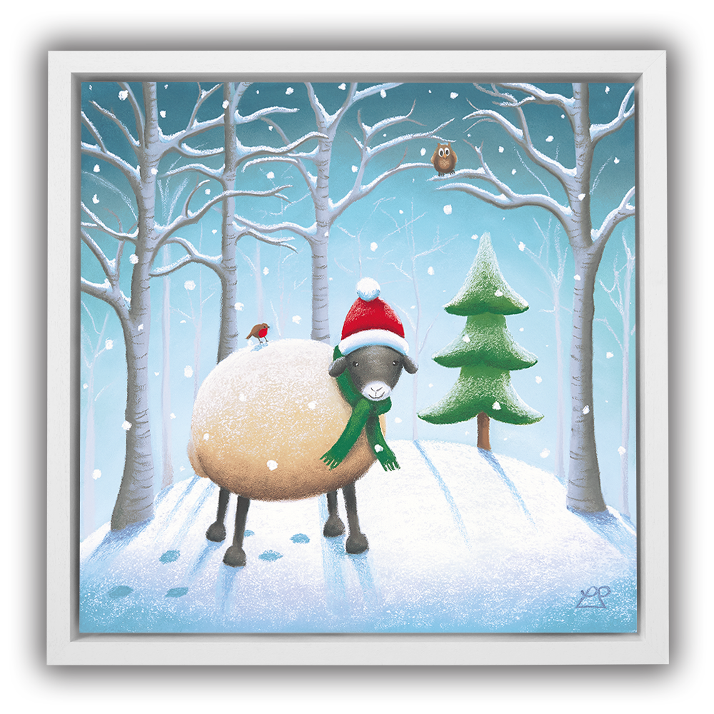 All wrapped up in her cosy hat and scarf, this little sheep is loving being the first to step onto the snow covered ground in this now glorious winter wonderland. Feeling the crunchy snow beneath her little trotters, she is loving sharing the delight this season brings, with her cute woodland friends.