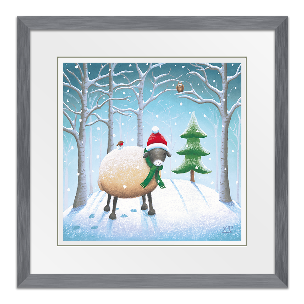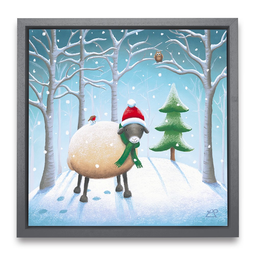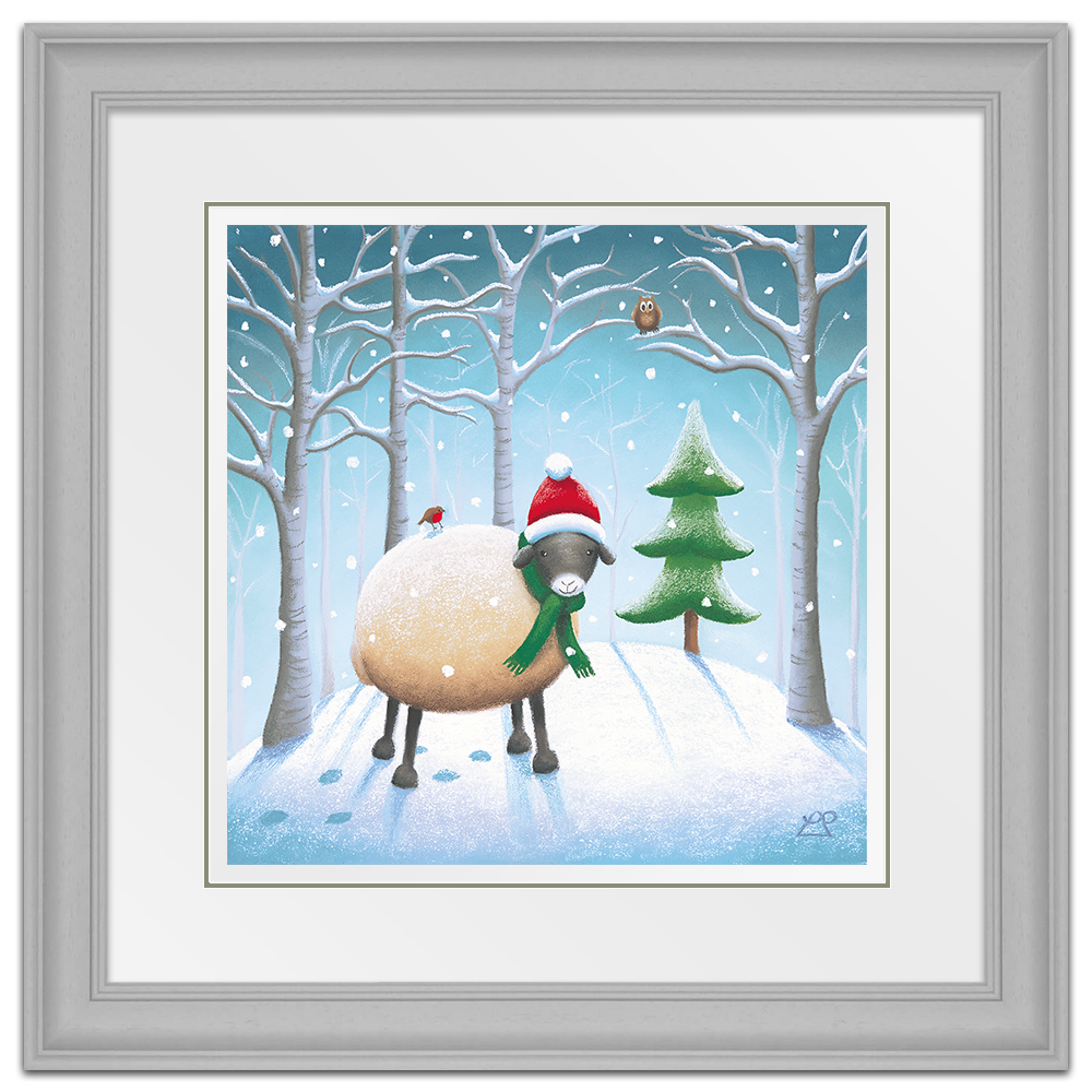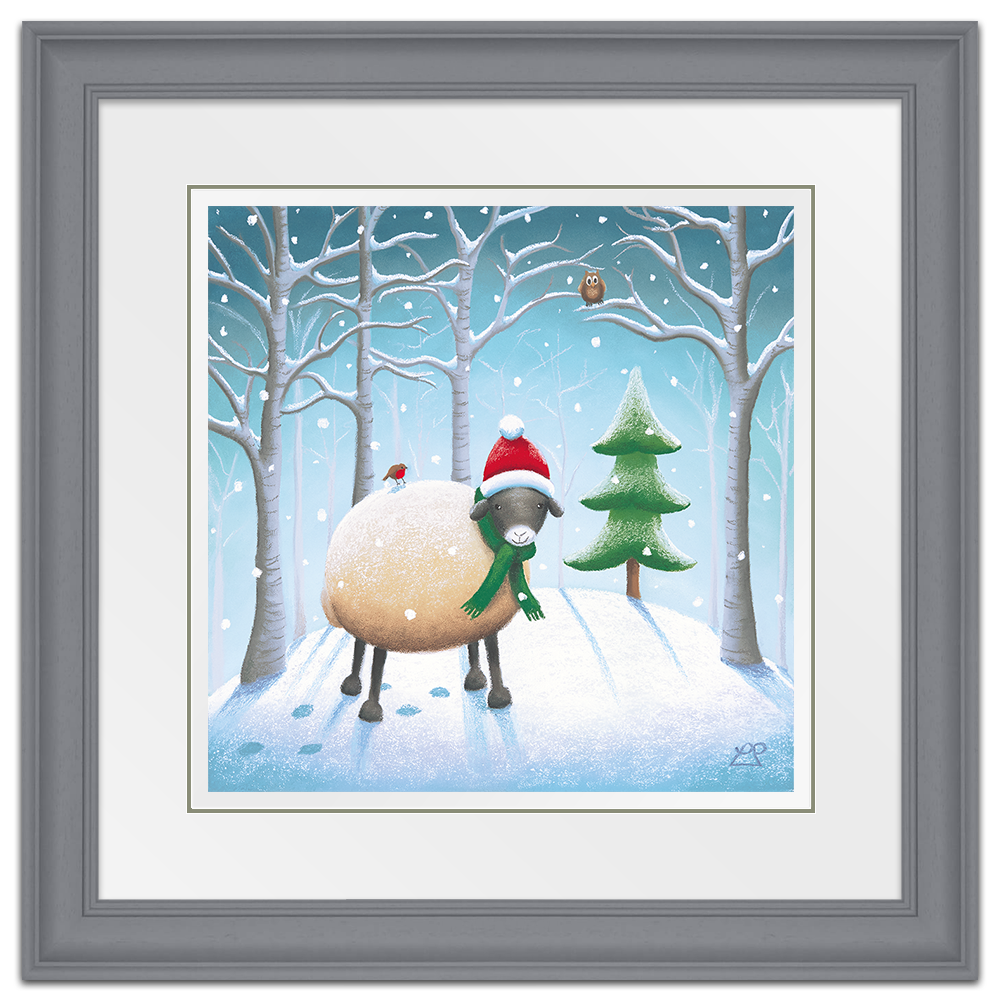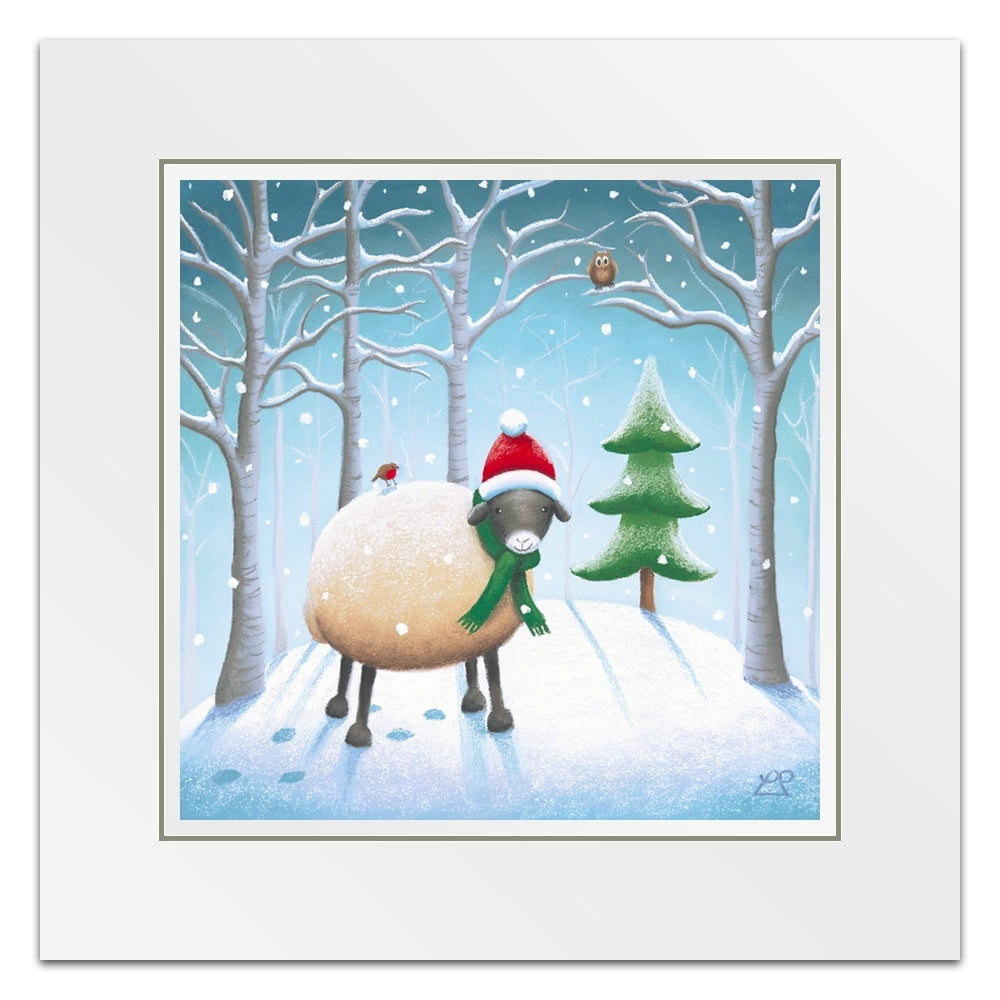 All wrapped up in her cosy hat and scarf, this little sheep is loving being the first to step onto the snow covered ground in this now glorious winter wonderland. Feeling the crunchy snow beneath her little trotters, she is loving sharing the delight this season brings, with her cute woodland friends.