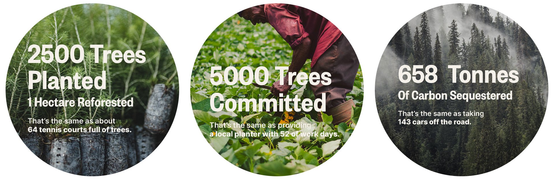We’ve seen firsthand here in the UK the impact just one tree like Sycamore Gap can have on the community around it, and how keenly its loss can be felt. Lucy said “We’re delighted that going forwards, your purchases will enable us to contribute to meaningful reforestation projects on a global scale, and grow our impact together.